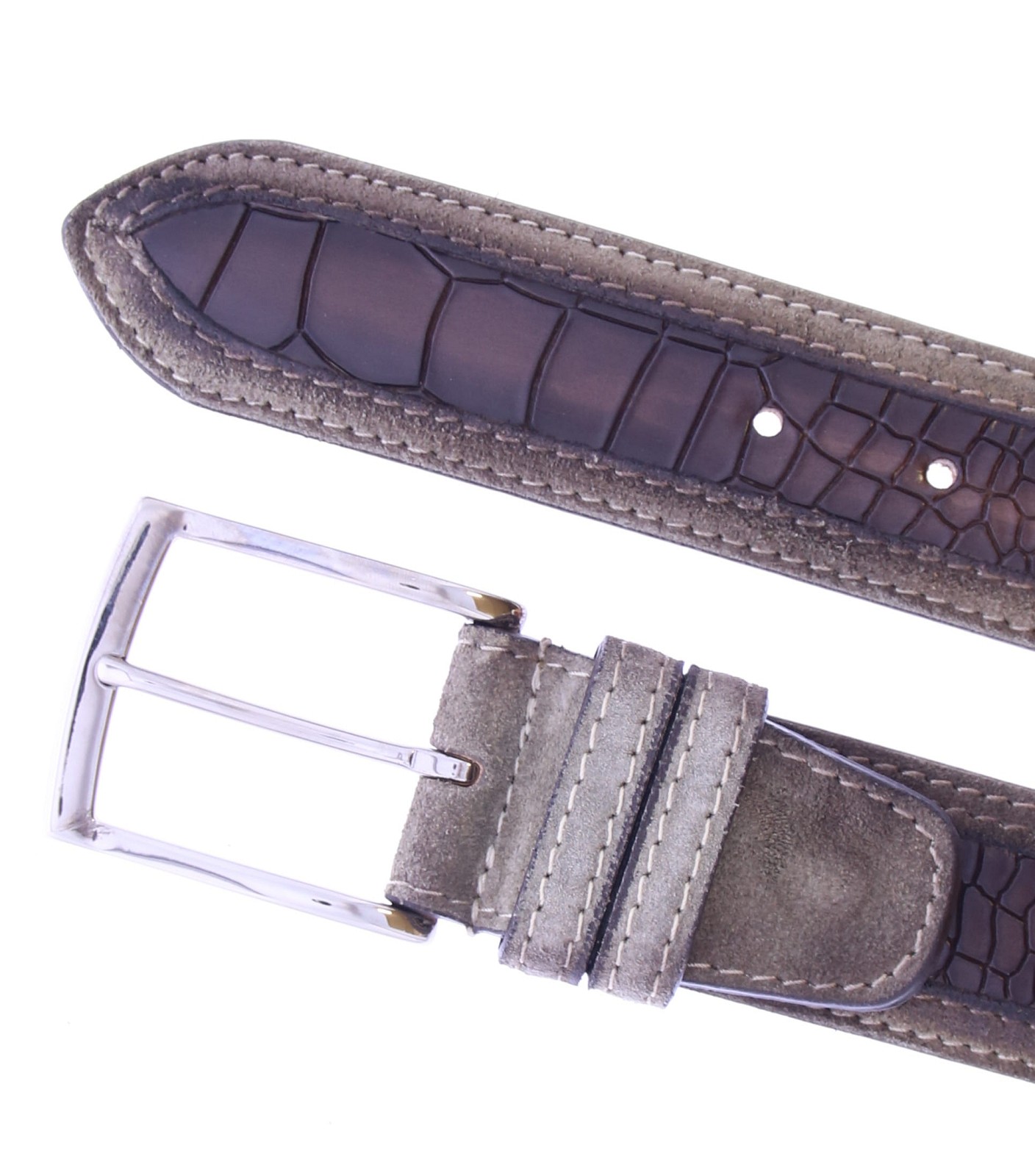 Bruin leren heren riem van Harris, uitgevoerd in luxe kalfsleer met crocoprint. De riem is in te korten aan de gespkant en is passend bij een schoen uit onze collectie met artikelnummer 44155.