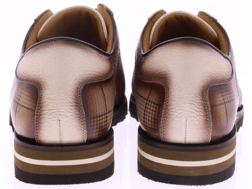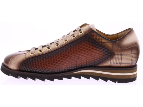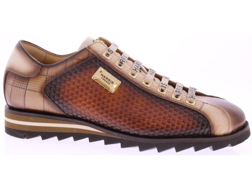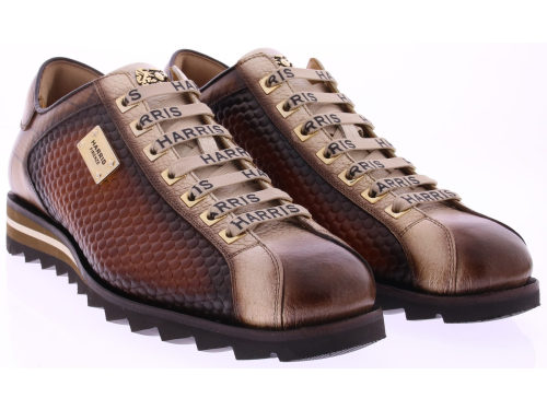Bruin leren heren sneaker van Harris. Deze luxe sneaker is uitgevoerd in hoogwaardig leer met een verfijnde structuur op de zijkant en subtiele kleurnuances voor een rijke uitstraling. Het gladleren neus- en hieldeel zorgen voor een elegant contrast. De goudkleurige veterogen en het kenmerkende Harris logo geven het model een exclusieve afwerking. De stevige rubberzool biedt comfort en stabiliteit bij dagelijks gebruik. Ontdek ook de andere heren sneakers van Harris bij Klijsen.