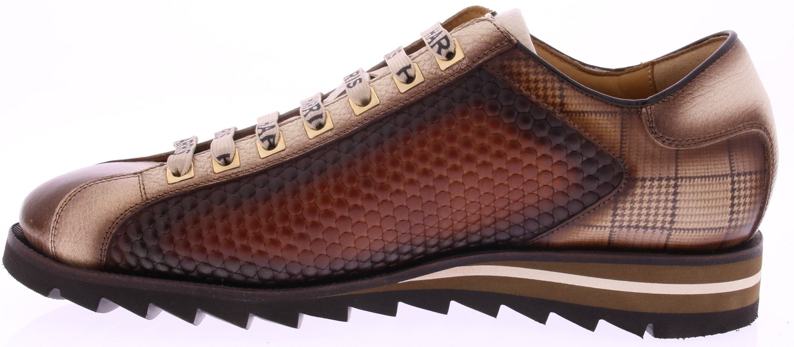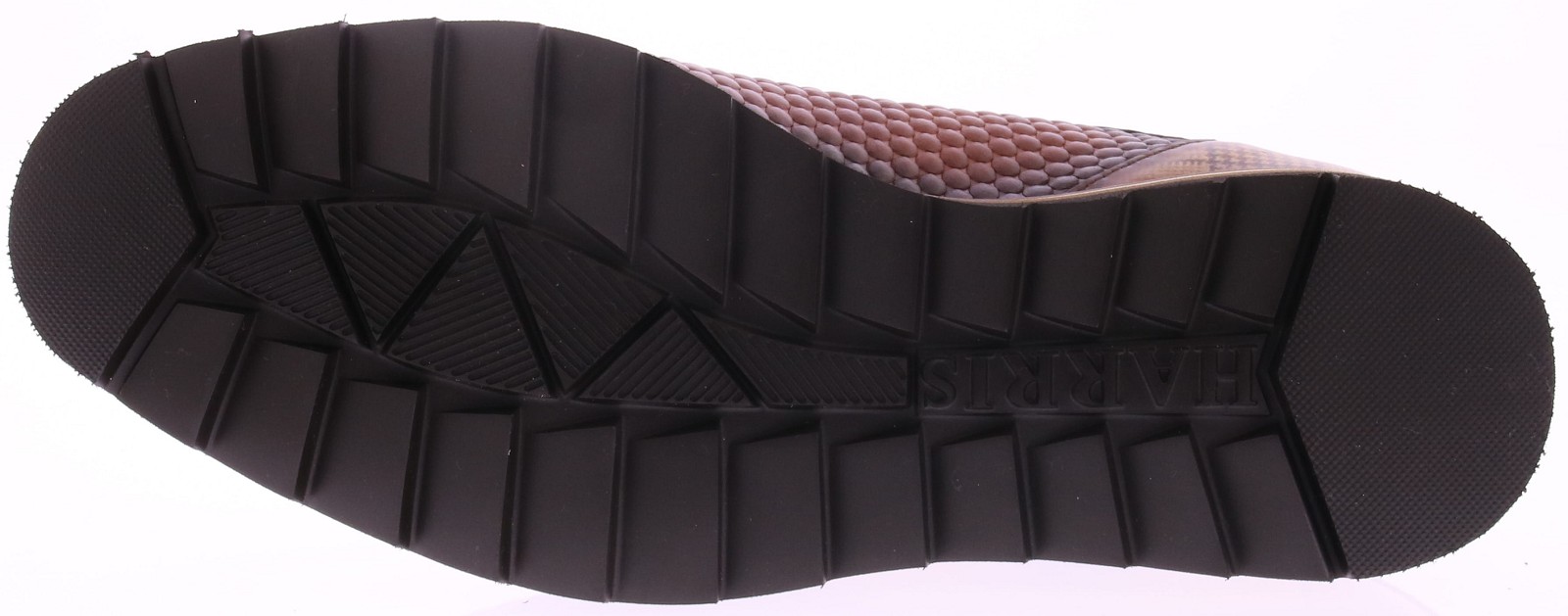Bruin leren heren sneaker van Harris. Deze luxe sneaker is uitgevoerd in hoogwaardig leer met een verfijnde structuur op de zijkant en subtiele kleurnuances voor een rijke uitstraling. Het gladleren neus- en hieldeel zorgen voor een elegant contrast. De goudkleurige veterogen en het kenmerkende Harris logo geven het model een exclusieve afwerking. De stevige rubberzool biedt comfort en stabiliteit bij dagelijks gebruik. Ontdek ook de andere heren sneakers van Harris bij Klijsen.
