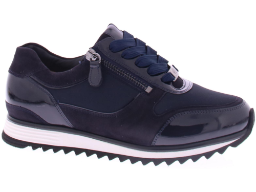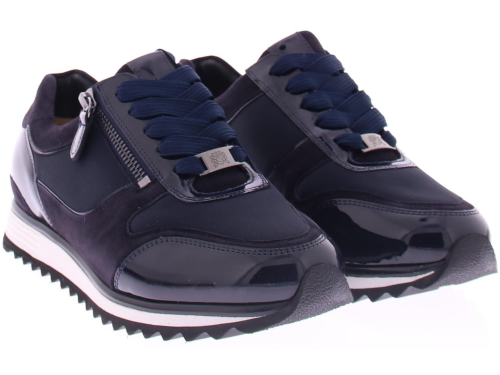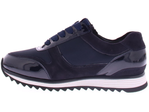Donker blauwe dames sneaker van Hassia. De sneaker is uitgevoerd in een combinatie van suede met stof en lakleer. De schoen heeft een ritsje voor een makkelijkere instap. De breedte is H en de binnenzool is uitneembaar.