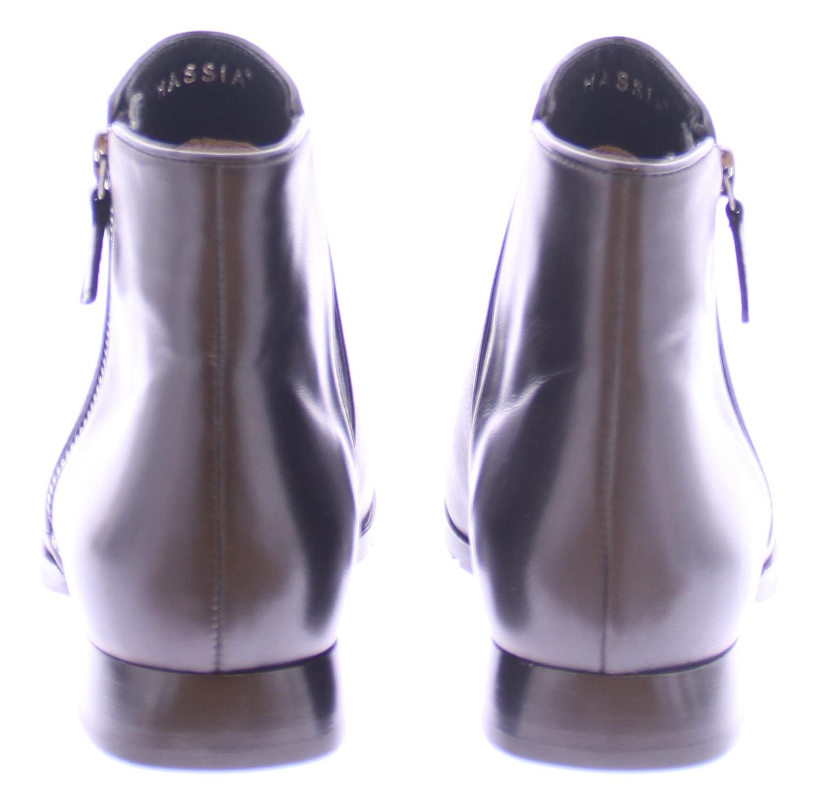 Zwart leren korte dames laars van Hassia. Opvallend detail is de ritssluiting aan de buitenkant van het laarsje, dat ziet er niet alleen erg leuk uit maar is ook nog eens praktisch met het aan- en uittrekken van de laars. De voering is gemaakt van leer en het voetbed is uitneembaar.
