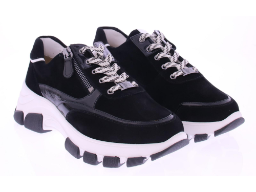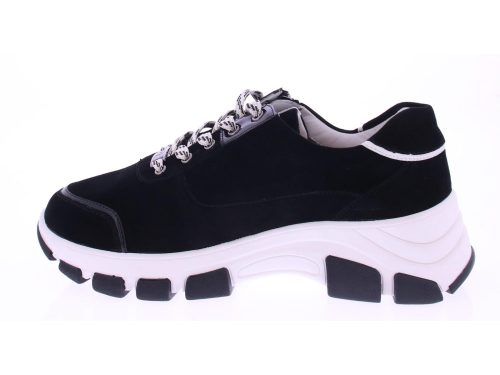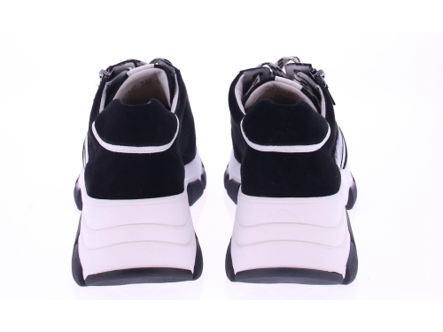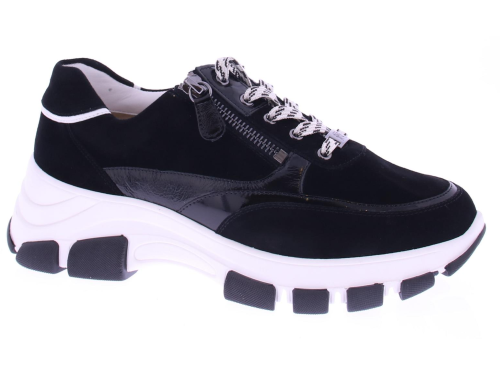 Zwart met wit suede dames sneaker van Hassia. Deze sneaker is speciaal ontworpen met een K-wijdte, ideaal voor bredere voeten. Dit halux-model heeft een zachte afwerking zonder naden op drukpunten, waardoor het perfect is voor gevoelige voeten of een hallux valgus. Uitgevoerd in stijlvol zwart met wit suede, met een ritsje voor het gemakkelijk aan- en uittrekken. Het uitneembare voetbed maakt de schoen geschikt voor uw eigen inlegzolen. De grove chunky zool zorgt voor extra stabiliteit en een trendy uitstraling. Een perfecte mix van mode en functionaliteit!