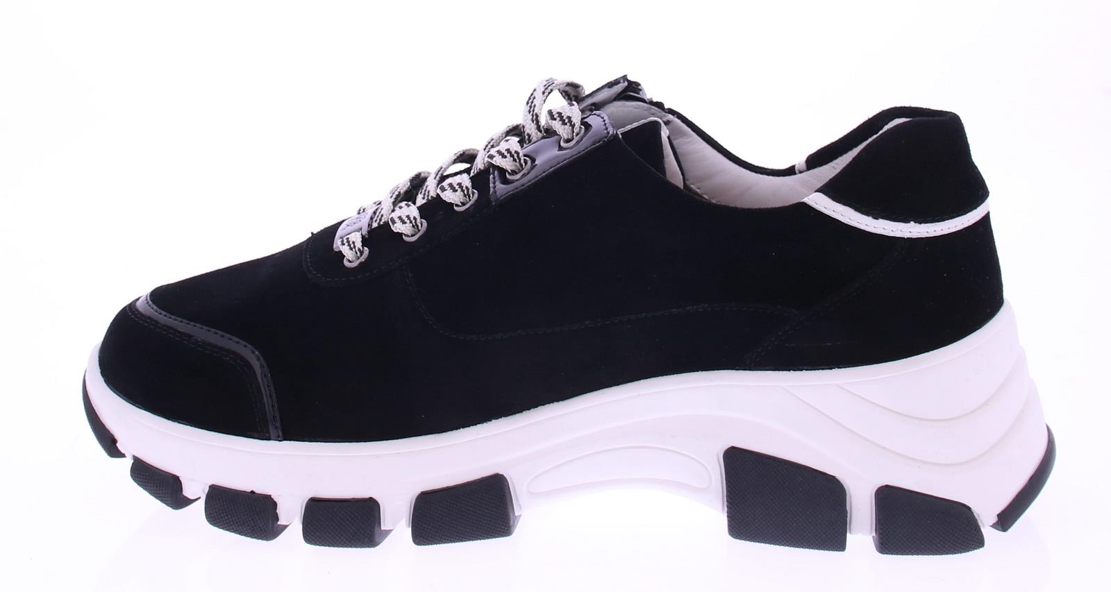 Zwart met wit suede dames sneaker van Hassia. Deze sneaker is speciaal ontworpen met een K-wijdte, ideaal voor bredere voeten. Dit halux-model heeft een zachte afwerking zonder naden op drukpunten, waardoor het perfect is voor gevoelige voeten of een hallux valgus. Uitgevoerd in stijlvol zwart met wit suede, met een ritsje voor het gemakkelijk aan- en uittrekken. Het uitneembare voetbed maakt de schoen geschikt voor uw eigen inlegzolen. De grove chunky zool zorgt voor extra stabiliteit en een trendy uitstraling. Een perfecte mix van mode en functionaliteit!