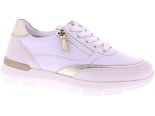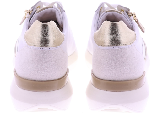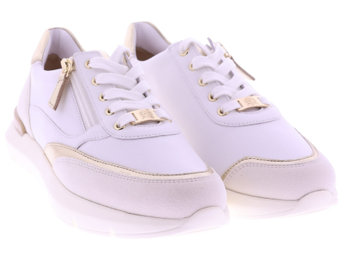 Witte leren dames sneakers van Hassia. Model 1-30 1350-0275 is uitgevoerd in zacht leer met metallic accenten voor een frisse en moderne uitstraling. Dankzij de H-leest biedt dit model extra ruimte en een comfortabele pasvorm. De rits naast de veters zorgt voor een makkelijke instap. Het uitneembare voetbed maakt de sneaker geschikt voor eigen inlegzolen en de lichte zool zorgt voor prettig draagcomfort, de hele dag door. Leuk bij een jeans, rok of een sportieve jurk. Ontdek ook de andere modellen van Hassiabij Klijsen Schoenmode.