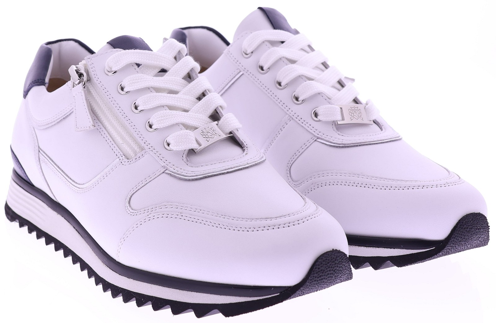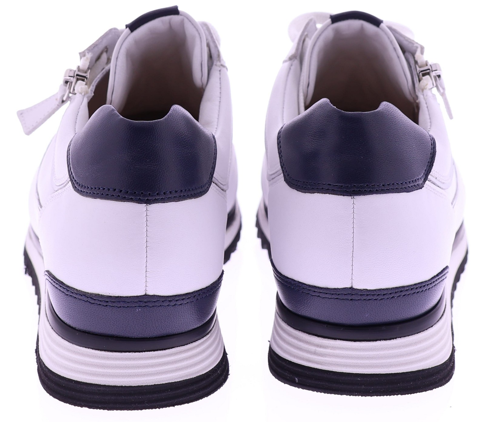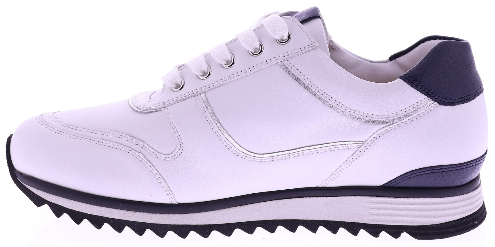 Witte leren dames sneakers van Hassia. Model 1-30 1350-0235 is uitgevoerd in zacht leer met donkeblauwe accenten voor een frisse en moderne uitstraling. Dankzij de H-leest biedt dit model extra ruimte en een comfortabele pasvorm. De rits naast de veters zorgt voor een makkelijke instap. Het uitneembare voetbed maakt de sneaker geschikt voor eigen inlegzolen en de lichte zool zorgt voor prettig draagcomfort, de hele dag door. Leuk bij een jeans, rok of een sportieve jurk. Ontdek ook de andere modellen van Hassia bij Klijsen Schoenmode.