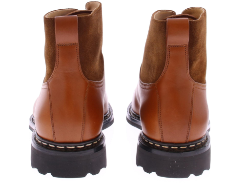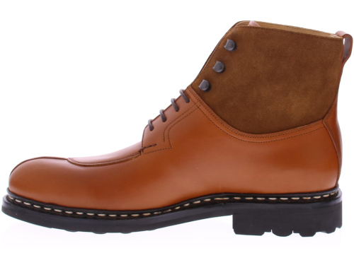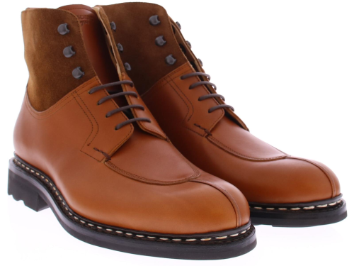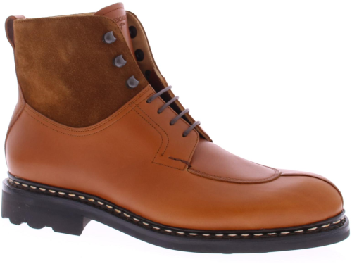 Heren enkelboot van Heschung. Dit Franse jachtschoenen merk staat bekend om hun kwaliteit, levensduur en afwerking. De schoen heeft een cognac leren voet met zwart suede schacht.De zool is van rubber en de schoen heeft een handsteeknaad rondom de stormwelt. De zool is van buiten naar buiten doorgenaaid om een waterdicht onderwerk te garanderen.