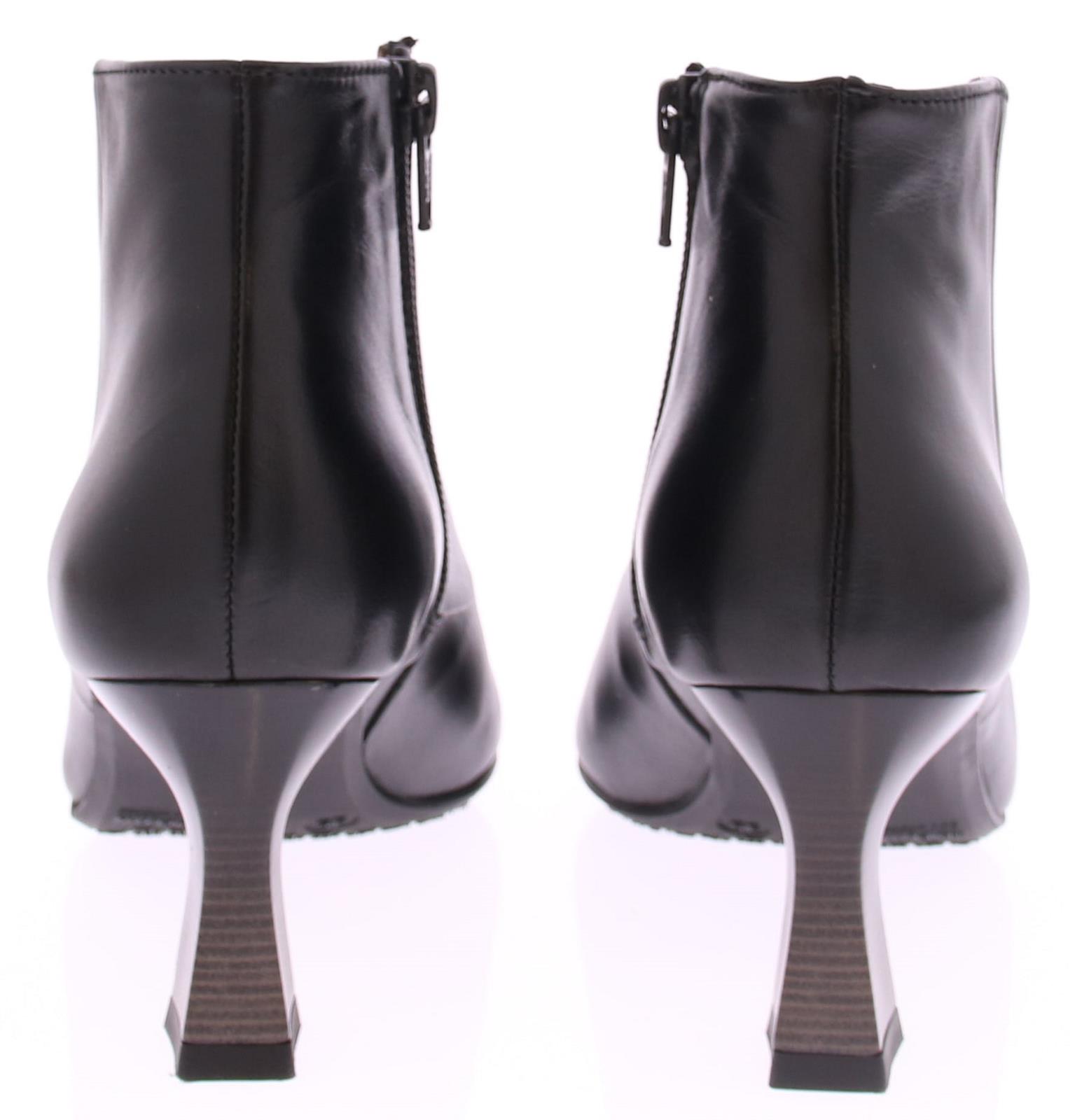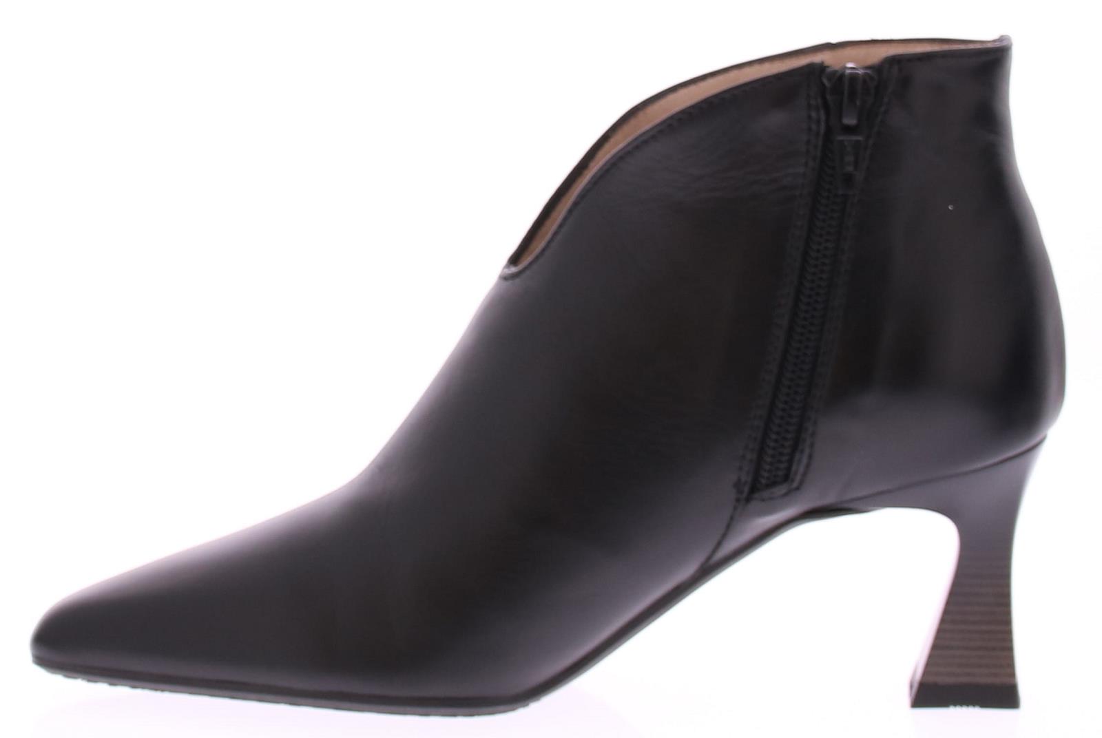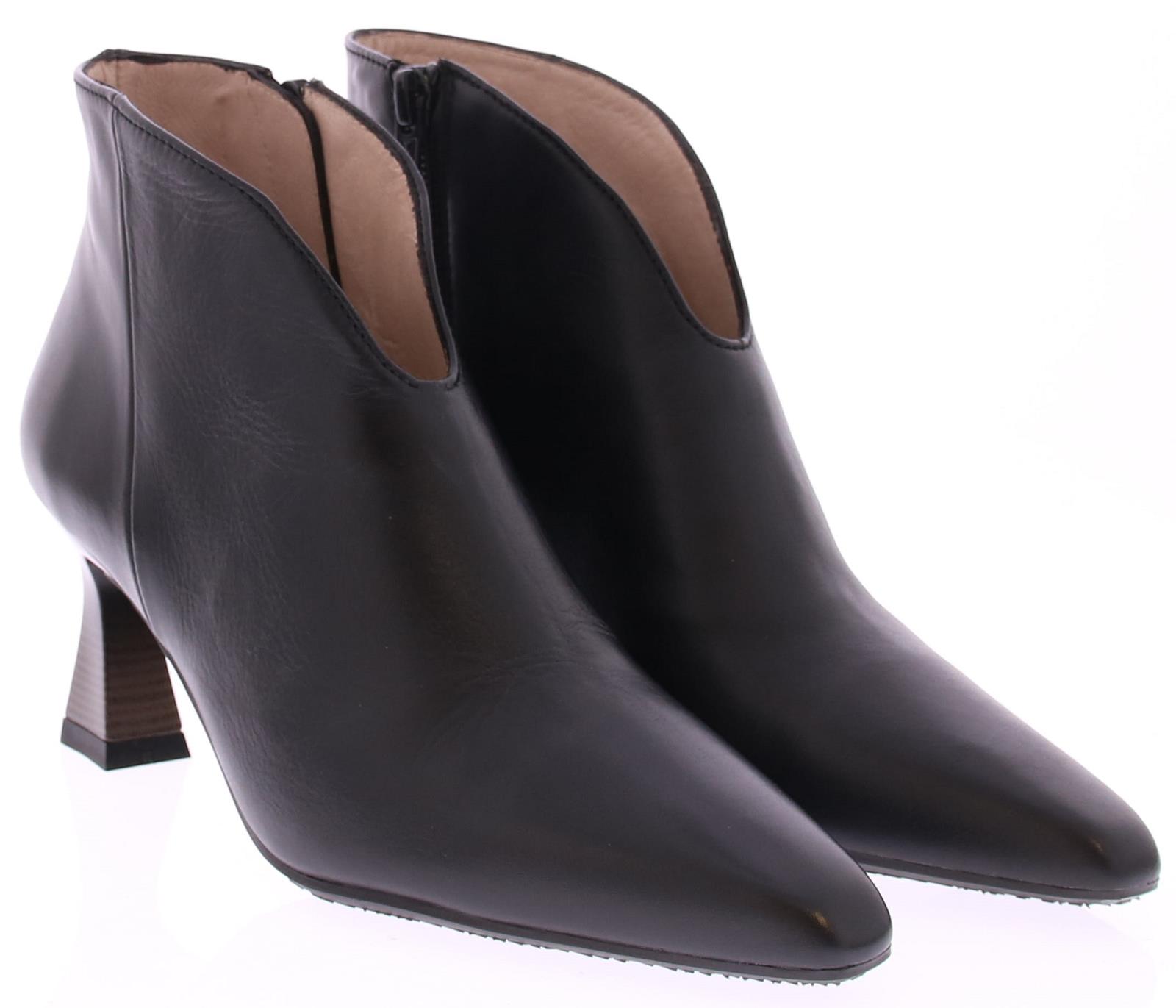 Zwart leren dames enkellaars van Hispanitas. Deze laars heeft een spitsere neus en een elegante v-uitsnijding. De hak is iets uitlopend en heeft een hoogte van 6 cm. Maak je outfit compleet en combineer dit leuke laarsje samen met een broek of jurk.
