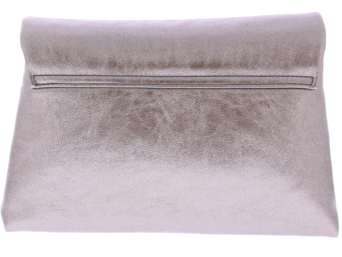 Zilver metallic leren dames tas van Hispanitas. De afmetingen zijn: 25 cm breed x 16 cm hoog x 7 cm diep. De tas sluit met een siersluiting en heeft een lange schouderband. Deze band is een ketting met een leren stuk in het midden om comfortabel te dragen. In de binnenkant zijn nog twee kleine vakjes.