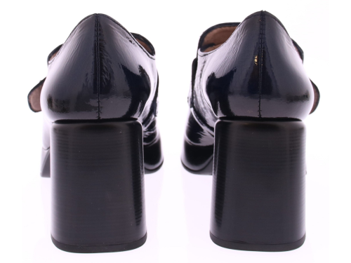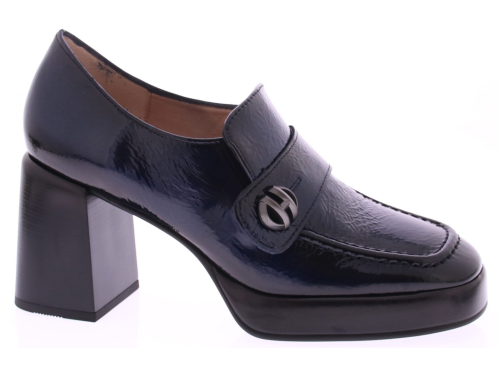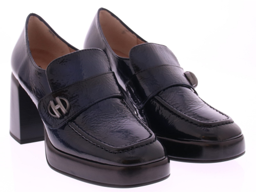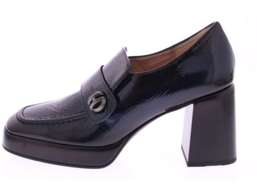 Donkerblauw lak leren dames instapper van Hispanitas, is de perfecte keuze voor vrouwen die op zoek zijn naar stijl en comfort. Het glanzende lakleer geeft de schoen een luxe uitstraling, terwijl de plateauzool van 2 cm en de blokhak van 7 cm zorgen voor een perfecte balans tussen hoogte en stabiliteit. De rubberen zool biedt uitstekende grip, waardoor je de hele dag met vertrouwen kunt lopen. Deze pump is veelzijdig genoeg om te dragen naar zowel zakelijke als formele gelegenheden, maar kan ook gemakkelijk gecombineerd worden met een casual outfit voor een verfijnde look.