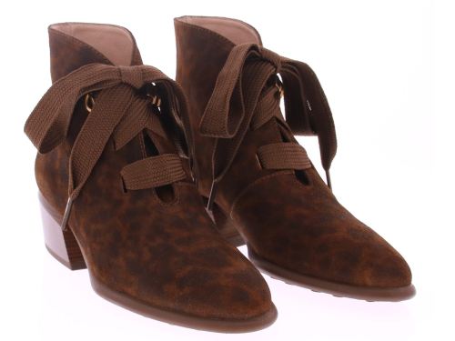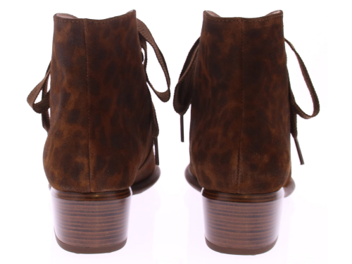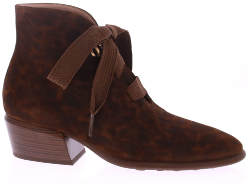 Deze dames korte laars van Hispanitas combineert een gedurfde stijl met klassieke elegantie. Het bruine leopard printje geeft de laars een speelse en opvallende uitstraling, terwijl de brede veter een stoer accent toevoegt. De spitse neus en de iets schuine hak van 4 cm zorgen voor een verfijnde, vrouwelijke look die perfect balanceert tussen mode en comfort.