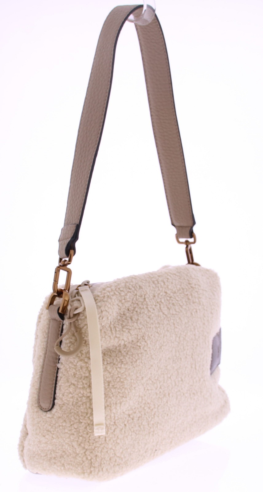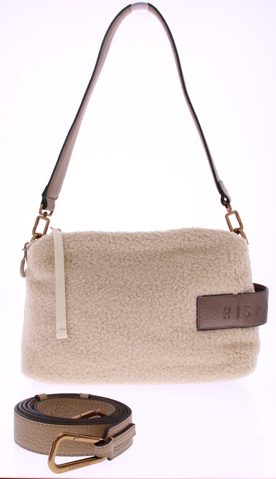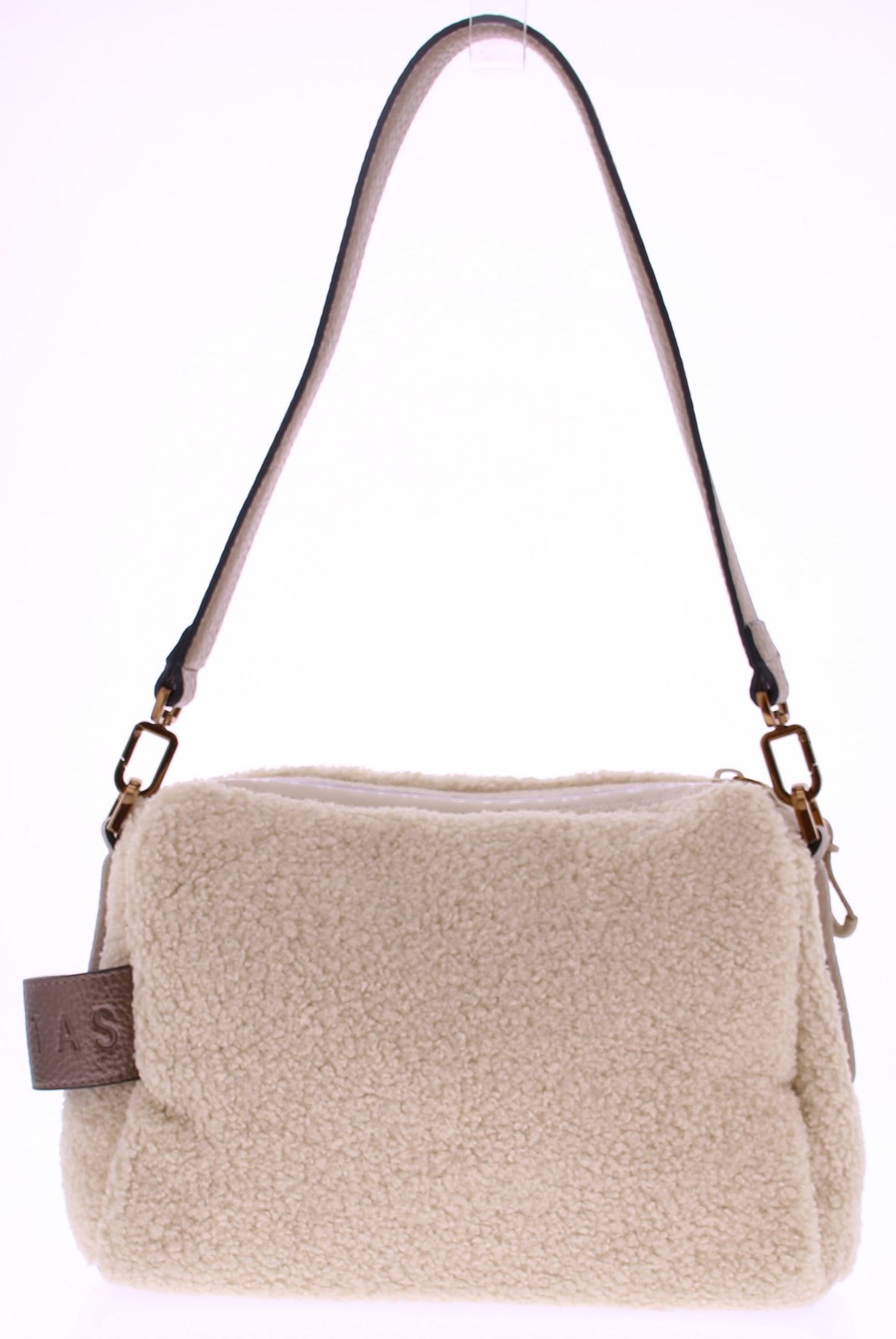 Deze roomkleurige teddy tas van Hispanitas is dé perfecte mix van stijl en comfort. De zachte teddy stof geeft de tas een warme, winterse uitstraling, terwijl de details van bruin leer, zoals de schouderband, zorgen voor een verfijnde afwerking. De tas sluit veilig met een ritssluiting en is ideaal in formaat voor je dagelijkse essentials. De leren schouderband is niet alleen stevig, maar ook comfortabel om te dragen.