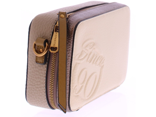 Deze elegante dames tas van Hispanitas combineert een zachte roomkleur met rijke vegan bruine lederen accenten. Met afmetingen van 24 cm breed, 16 cm hoog en 9 cm diep is de tas compact, maar verrassend praktisch in gebruik. De tas is afgewerkt met een goudkleurige ritssluiting en biedt aan de binnenkant twee handige opbergvakjes voor kleinere essentials. De lange, brede schouderband met het subtiele Hispanitas-logo is verstelbaar en zorgt voor optimaal draagcomfort, of je de tas nu crossbody draagt of over één schouder. Een veelzijdige accessoire die zowel bij casual als geklede looks past – stijlvol, praktisch en 100% Hispanitas.