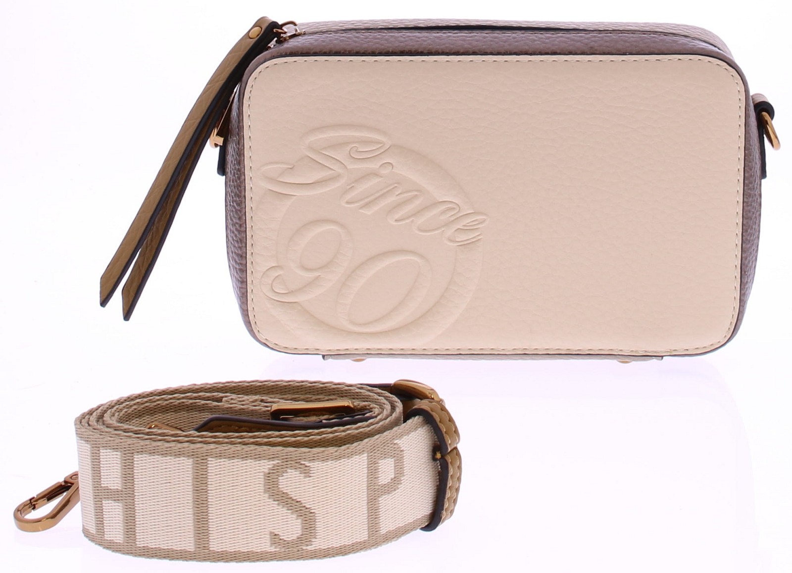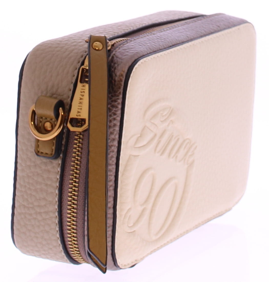 Deze elegante dames tas van Hispanitas combineert een zachte roomkleur met rijke vegan bruine lederen accenten. Met afmetingen van 24 cm breed, 16 cm hoog en 9 cm diep is de tas compact, maar verrassend praktisch in gebruik. De tas is afgewerkt met een goudkleurige ritssluiting en biedt aan de binnenkant twee handige opbergvakjes voor kleinere essentials. De lange, brede schouderband met het subtiele Hispanitas-logo is verstelbaar en zorgt voor optimaal draagcomfort, of je de tas nu crossbody draagt of over één schouder. Een veelzijdige accessoire die zowel bij casual als geklede looks past – stijlvol, praktisch en 100% Hispanitas.