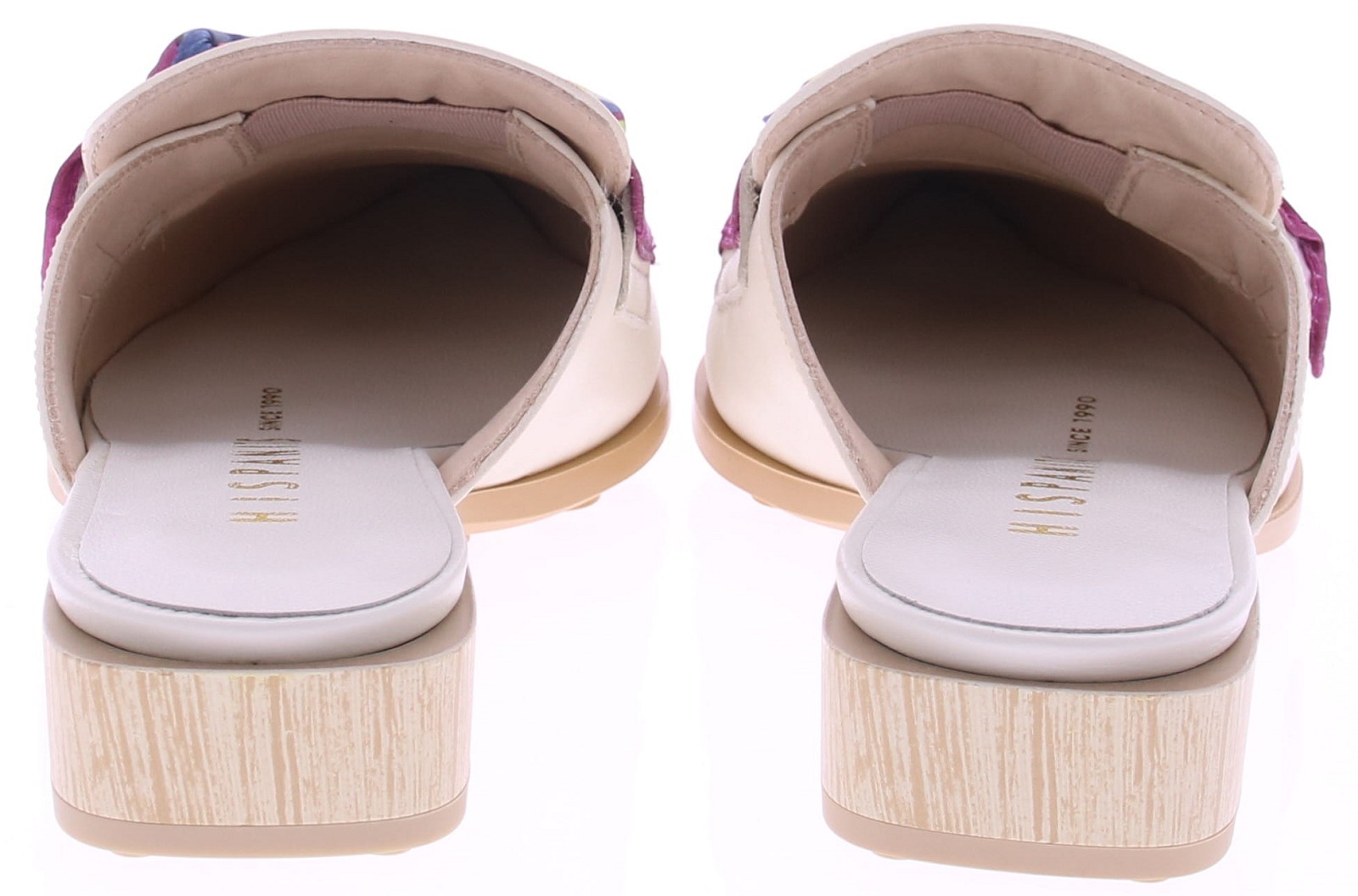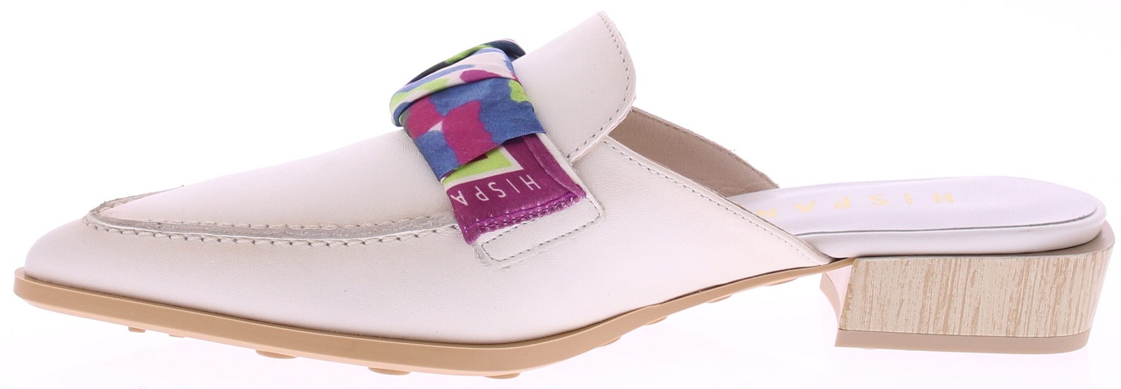 Roomkleurige leren dames muilen van Hispanitas model Turin Soho panna. Deze muilen hebben een iets spitse neus en zijn uitgevoerd in soepel leer. Op de wreef zorgt een garnering in de vorm van een gevlochten foulardje voor een speels accent. De lage hak van 3 cm biedt comfortabel draaggemak voor elke dag. Mooi te combineren met een zomerse jurk of lichte broek. Ontdek ook de andere dames pumps van Hispanitas bij Klijsen.