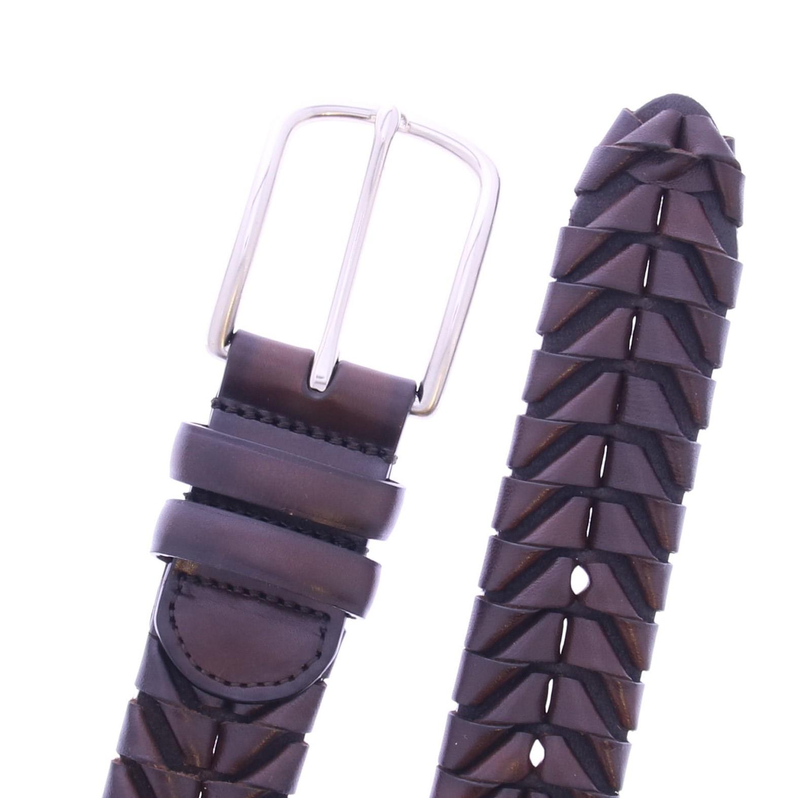 Donkerbruin gevlochten leren heren riem van Job. Deze riem de is in te korten aan de gespkant en is 4 cm breed.
