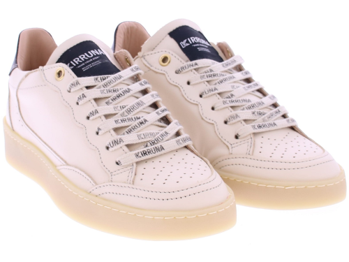 Off-white leren dames sneaker van Kirruna. Deze witte leren sneaker voor dames van Kirruna is een stijlvolle en veelzijdige toevoeging aan je garderobe. Gemaakt van wit leer, afgewerkt met subtiele zwart leren details. De lichtgewicht, dempende zool zorgt voor ultiem comfort tijdens het lopen. De sneaker is voorzien van ton-sur-ton veters met logo. Perfect te combineren met zowel casual outfits als een meer geklede, sport-chique stijl. Een ideale keuze voor wie op zoek is naar een comfortabele en tijdloze damessneaker.