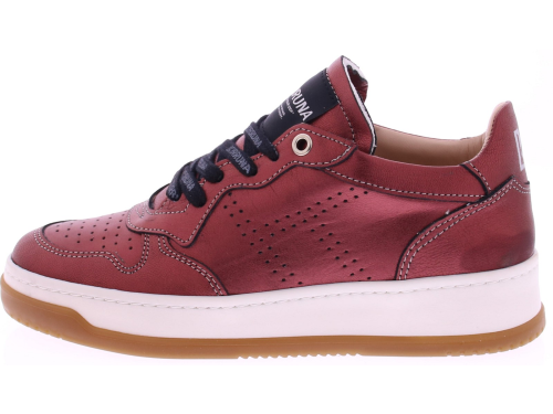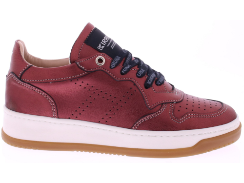 Bordeaux metallic leren dames sneaker van Kirruna. Deze trendy sneaker van Kirruna in opvallend metallic bordeaux met subtiele perforatiedetails. Heeft een comfortabele off-white zool, zwarte veters met logo en een logodetail op de tong. Dankzij de demping in de zool is deze sneaker ideaal voor dagelijks gebruik. Combineer met neutrale of felle kleuren voor een statement look.