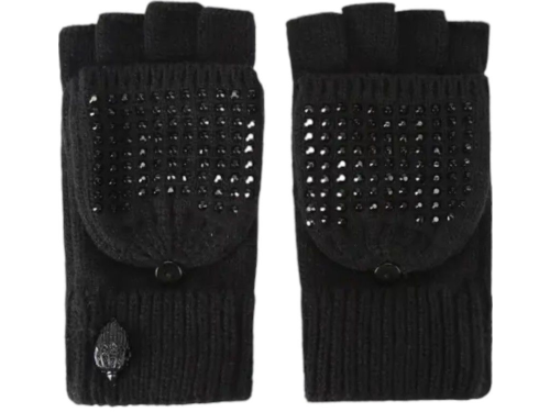 Zwarte handschoen voor dames van het merk Kurt Geiger. Met de Eagle gloves van Kurt Geiger kunt u gerust de kou in ze zijn gemaakt van hoogwaardig acryl en deze zijn te gebruiken met u vingers vrij of sla deze om en maak er een heerlijk warme want van.