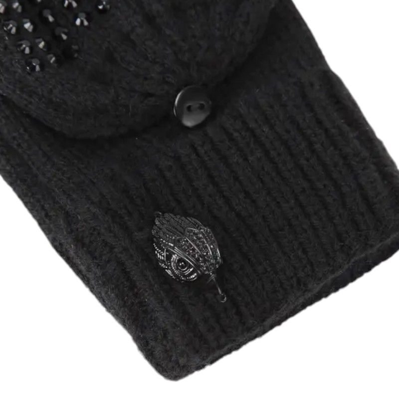 Zwarte handschoen voor dames van het merk Kurt Geiger. Met de Eagle gloves van Kurt Geiger kunt u gerust de kou in ze zijn gemaakt van hoogwaardig acryl en deze zijn te gebruiken met u vingers vrij of sla deze om en maak er een heerlijk warme want van.
