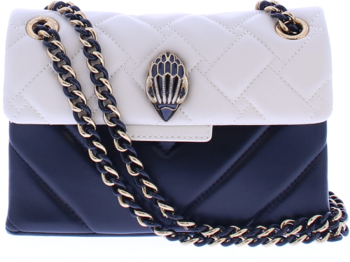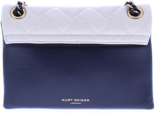 Zwart wit leren dames tas van Kurt Geiger. Deze leren tas heeft het iconische adelaarshoofd op de voorklep met zwarte kristallen, sluit doormiddel van een duo magneet verborgen onder de klep. De tas heeft een elegante en tijdloze uitstraling die perfect is voor zowel dagelijks gebruik als speciale gelegenheden.