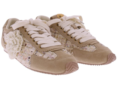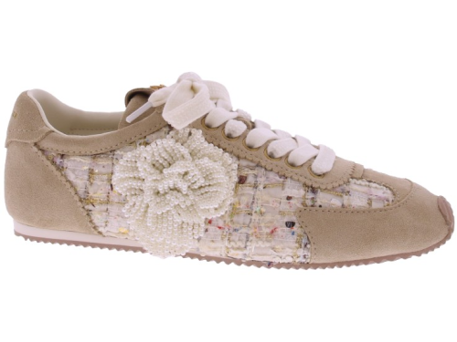 Beige suède dames sneakers van Kurt Geiger, model Islington. Deze opvallende sneaker is uitgevoerd in een gemêleerde stof met een prachtige bloemapplicatie van kraaltjes op de zijkant. De goudkleurige branding op de tong geeft het ontwerp een luxe finishing touch. Een eigenzinnige, modieuze sneaker die elke outfit nét dat beetje extra flair geeft. Ontdek ook de andere dames sneakers van Kurt Geiger bij Klijsen.