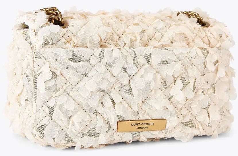 Beige dames tas van Kurt Geiger, model Mini Pimlico. Deze compacte tas is uitgevoerd in een gestructureerde stof met verfijnde imitatieparels en heeft twee aparte compartimenten. De antiek messing adelaarskop op de voorzijde en de bijpassende kettingschouderband geven het ontwerp een luxe uitstraling. Voorzien van een plat open vak aan de achterkant en een binnenvak met rits. Afmetingen: 12 x 21 x 6 cm, geschikt voor telefoons tot 15 cm. Kijk ook eens bij onze andere Kurt Geiger schoenen en accessoires.