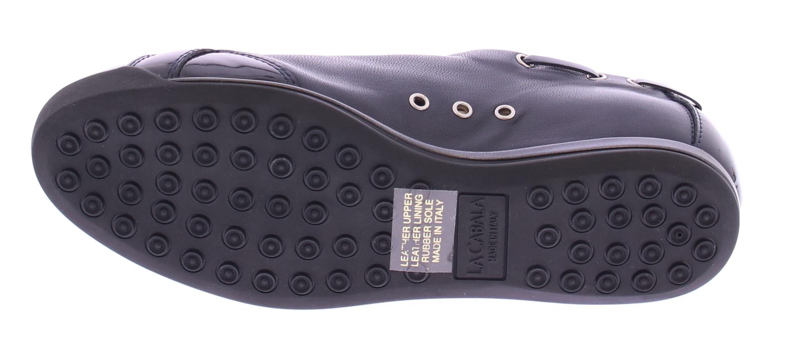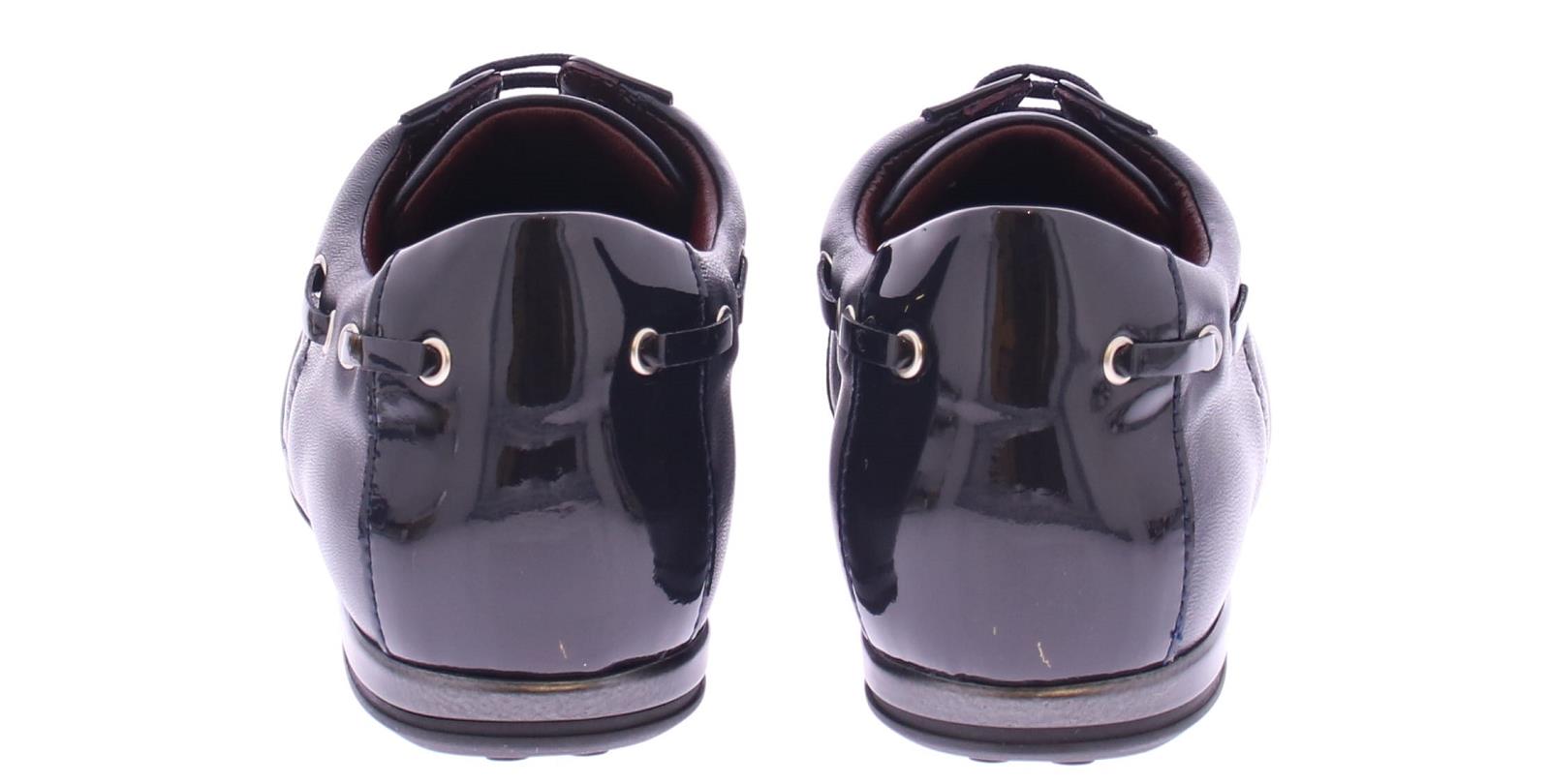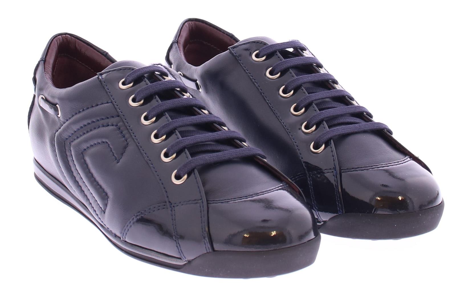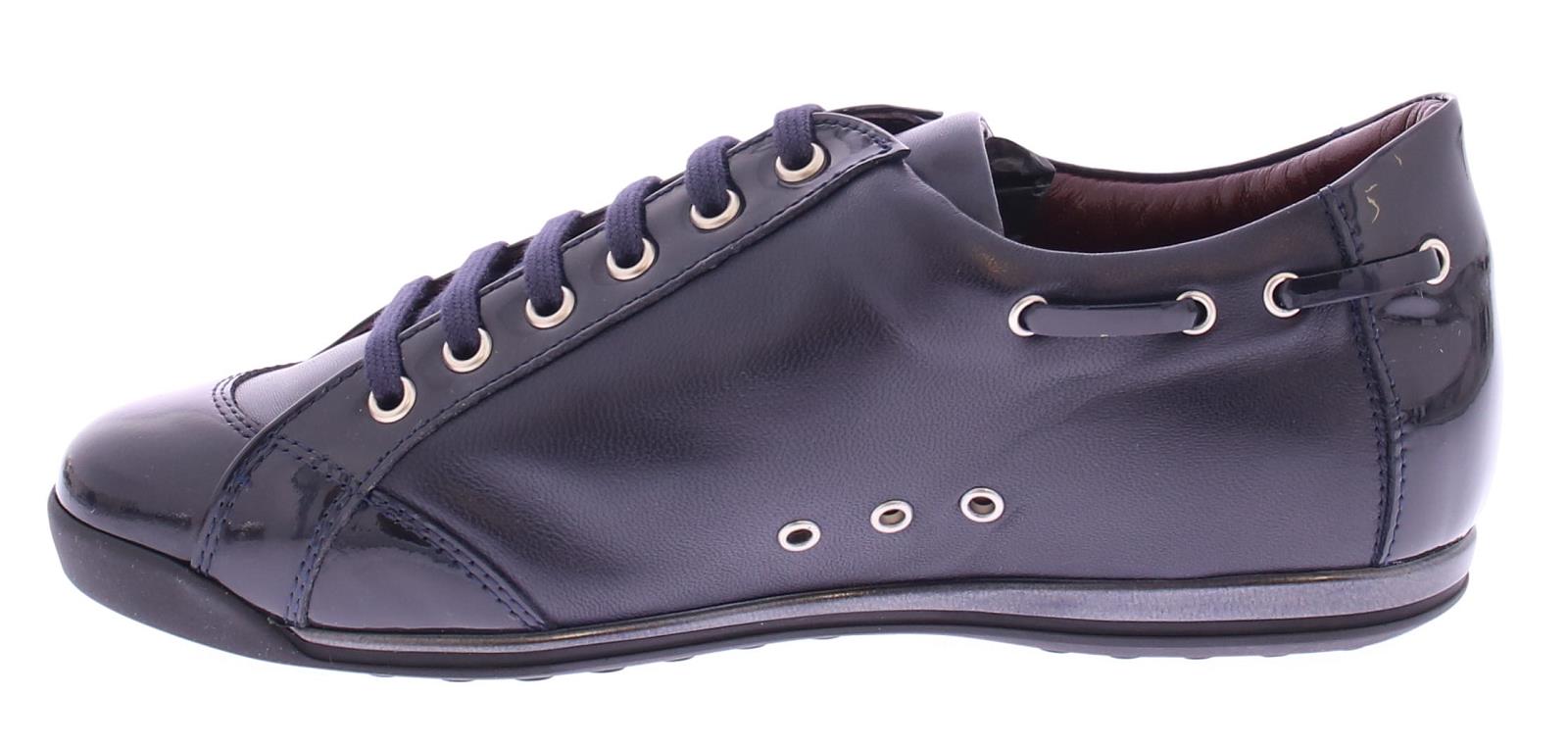 Donkerblauw leren dames sneaker van La Cabala. Uitgevoerd in het bekende superzachte kalfsleer in combinatie met lakleer op de neus, hiel en langs de veter. Het voetbed van de elegante sneakers is uitneembaar.