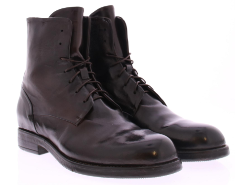 Hoge veterboot van buffel leer in ranch ebano uitgevoerd op een rubber zool met leren voering.