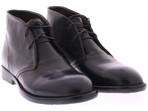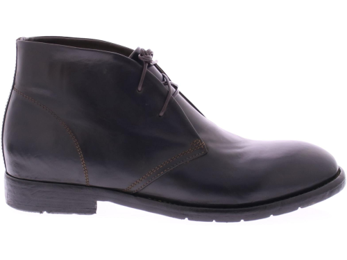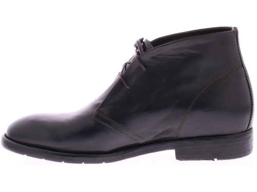 Heren veterboot van Lemargo artikel DR44A uitgevoerd in zeer donker groen cordovan leer met bruin nagekleurd. In het dachlicht komt er groen in zicht. De schoen heeft een robuste en stoere uitstraling door het gebruik van dit type leer. De zool van de schoen is van leer met rubber inleg op het slijtvlak van de zool. voor de casual uitstraling zijn de zoolranden wat gebutst en getrommeld. De schoen heeft 2 vetergaatjes en een wat afgeronde leest.
