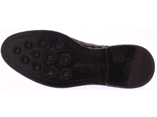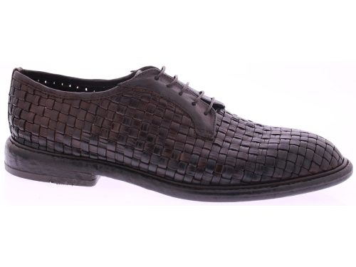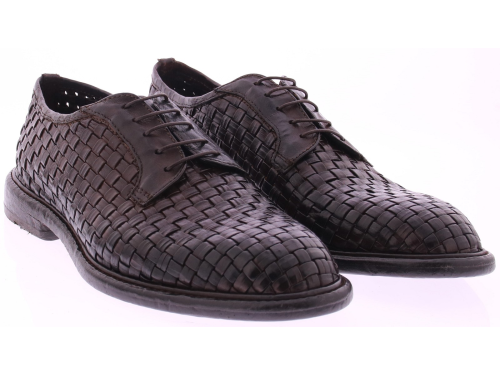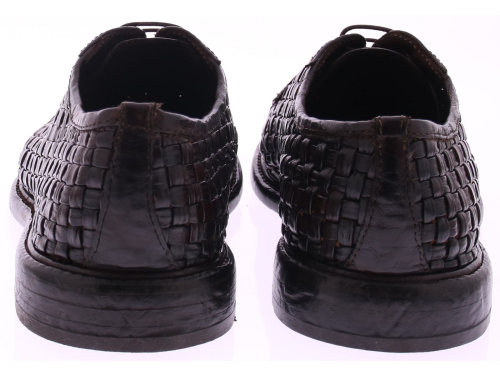 Donkerbruine leren heren veterschoen van Lemargo. Dit originele model is volledig met de hand gevlochten van stevig buffelleer, wat zorgt voor een karaktervolle uitstraling en een natuurlijke souplesse. De schoen is ongevoerd, waardoor het vlechtwerk optimaal tot zijn recht komt en direct contact met het leer voelbaar blijft. Uitgevoerd met een klassieke vetersluiting en een authentieke leren zool, passend bij het ambachtelijke karakter van Lemargo. Ontdek ook de andere herenschoenen van Lemargo bij Klijsen.