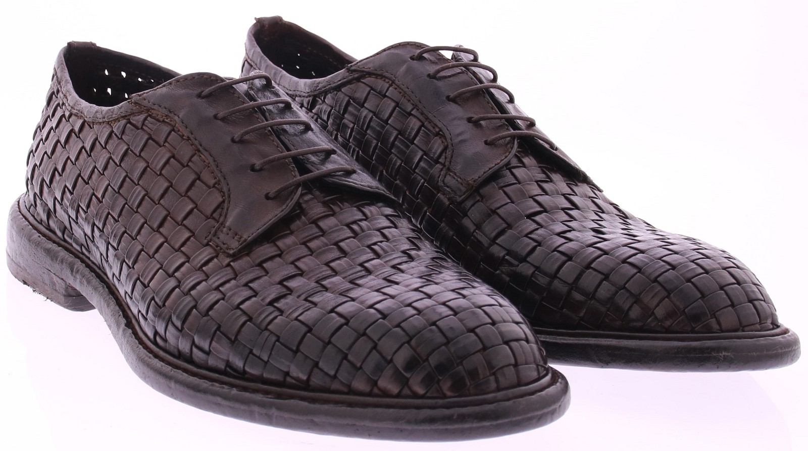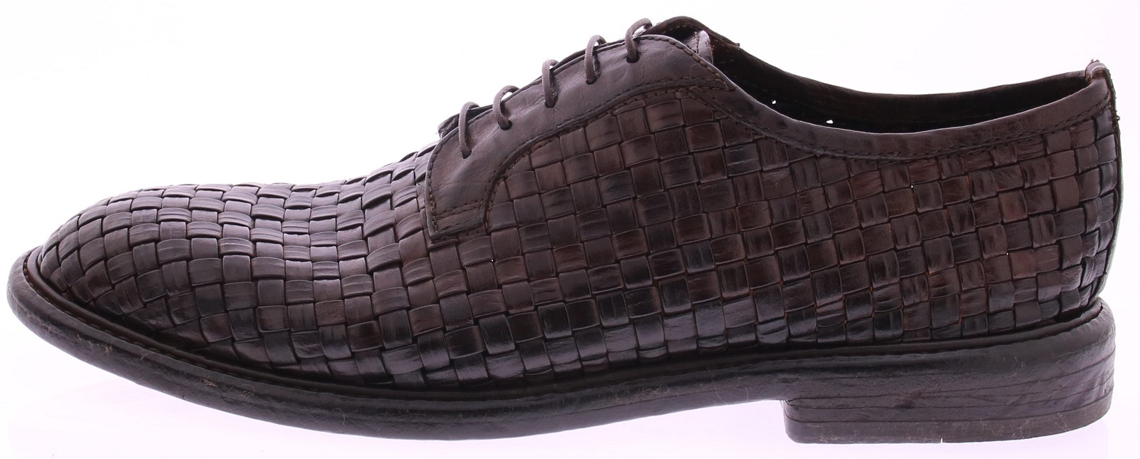 Donkerbruine leren heren veterschoen van Lemargo. Dit originele model is volledig met de hand gevlochten van stevig buffelleer, wat zorgt voor een karaktervolle uitstraling en een natuurlijke souplesse. De schoen is ongevoerd, waardoor het vlechtwerk optimaal tot zijn recht komt en direct contact met het leer voelbaar blijft. Uitgevoerd met een klassieke vetersluiting en een authentieke leren zool, passend bij het ambachtelijke karakter van Lemargo. Ontdek ook de andere herenschoenen van Lemargo bij Klijsen.