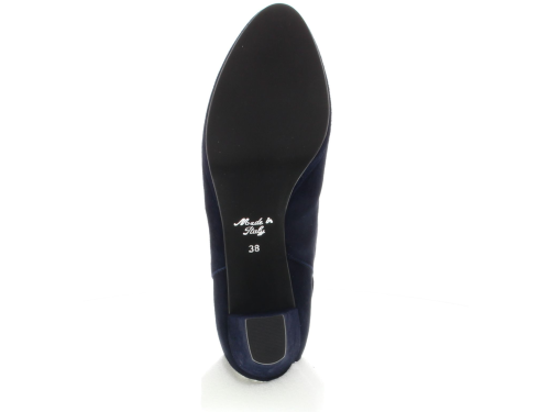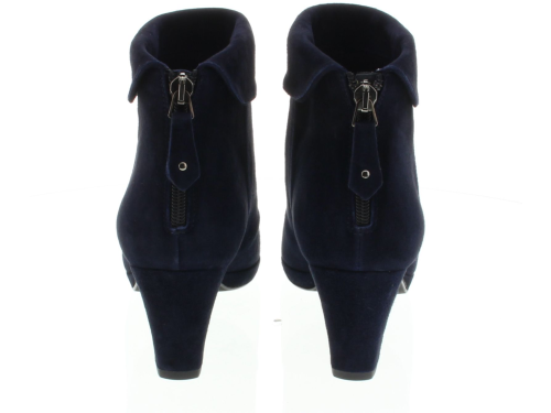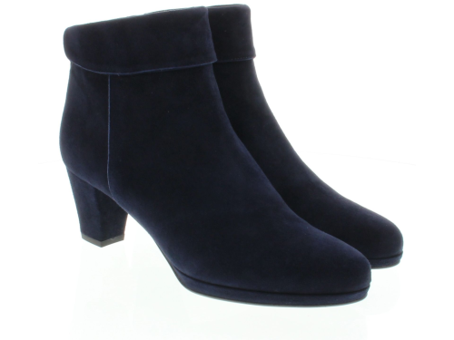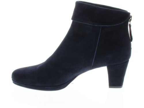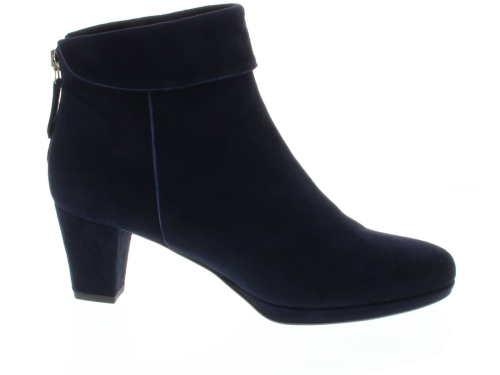 Donkerblauw suede dames enkellaars van Lilian. De laarzen zijn voorzien van een plateau waardoor de 5 cm hak lager aanvoelt. Het model heeft een rits op de hiel en de schacht kunt u eventueel omhoog vouwen.