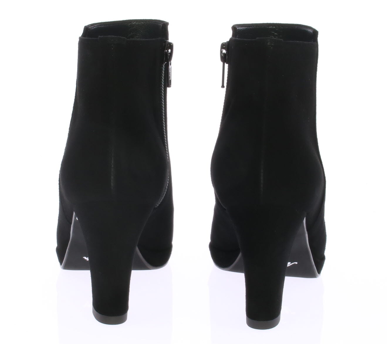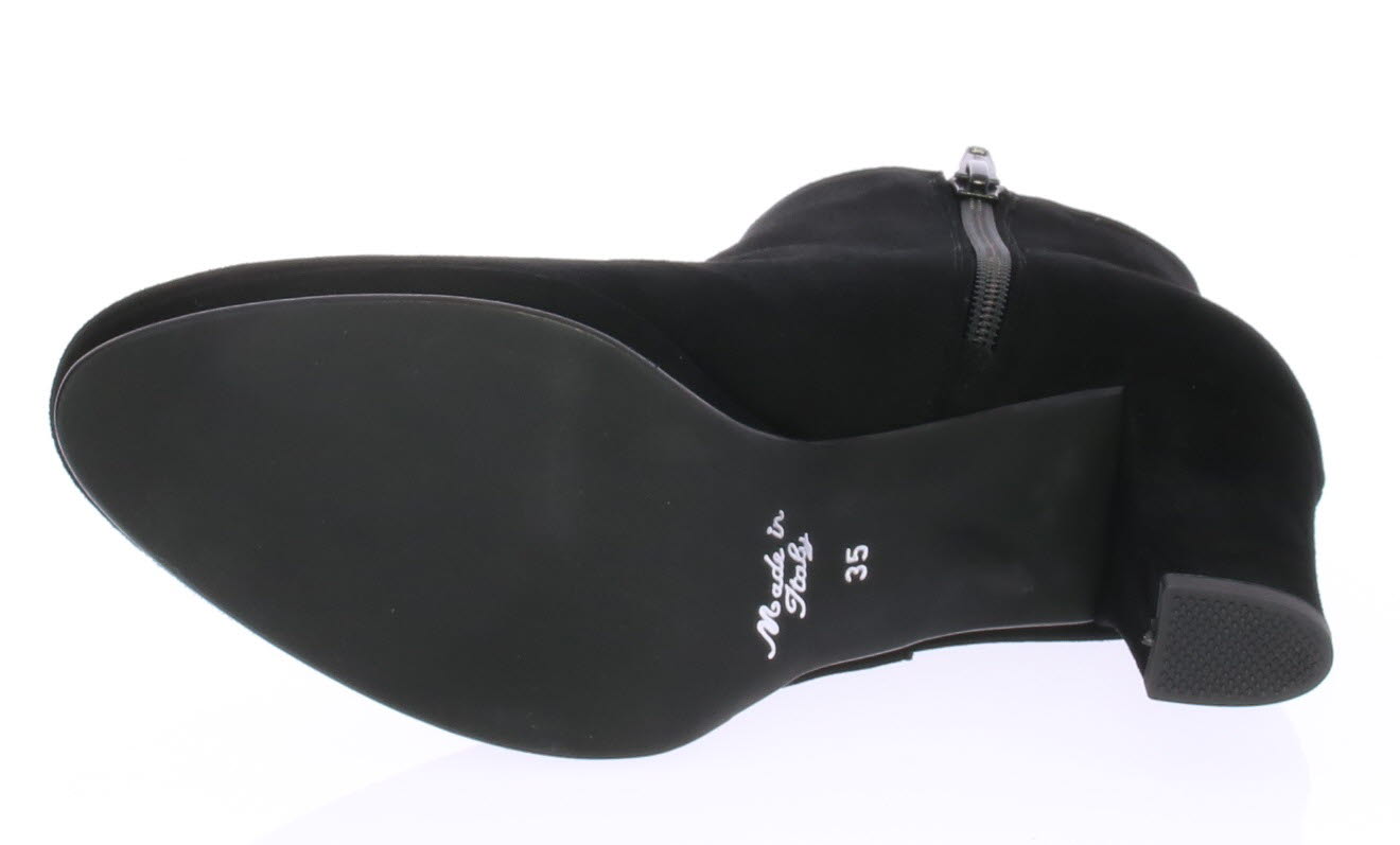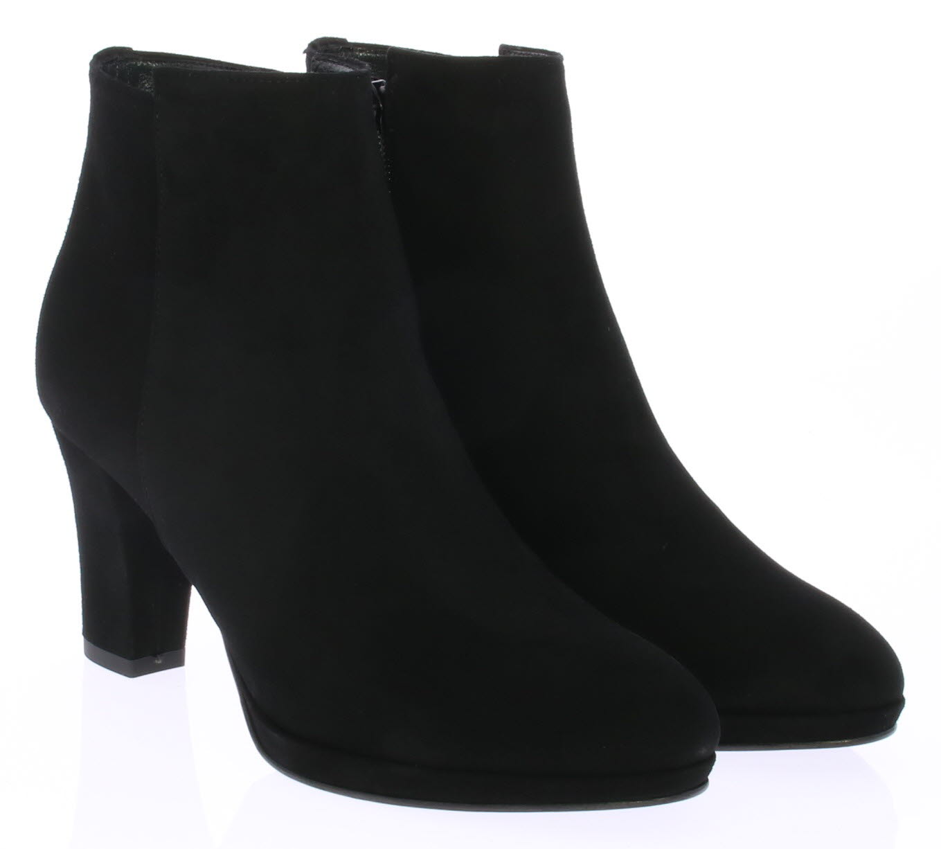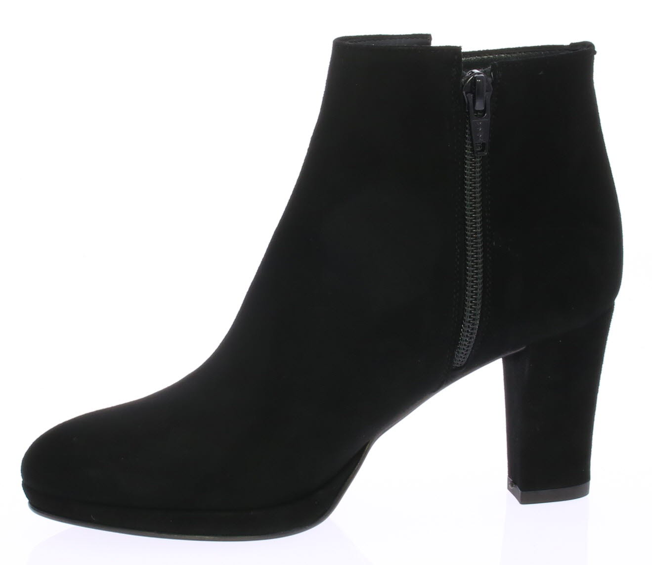 Zwart suede dames enkellaars van Lilian. De laars heeft een bekleed plateau waardoor de 6 cm hoge hak veel minder hoog aanvoelt. Het is een mooi elegant basislaars en een aanvulling in elke garderobe.