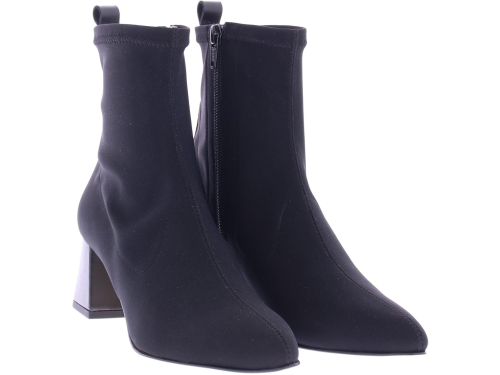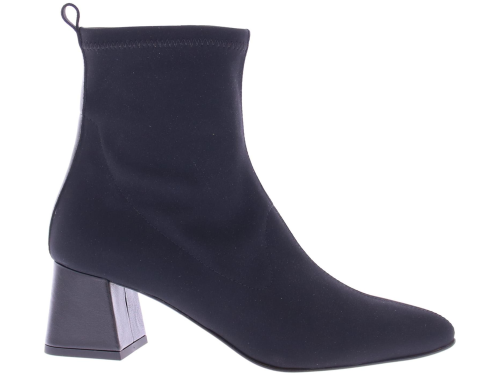 Zwarte stoffen dames stretch laars van Lilian. Uitgevoerd op een iets spitsere leest met aan de zijkant een rits. De beklede leren hak heeft een hoogte van 6 cm. Een mooie basislaars met leren voering.