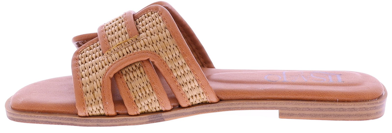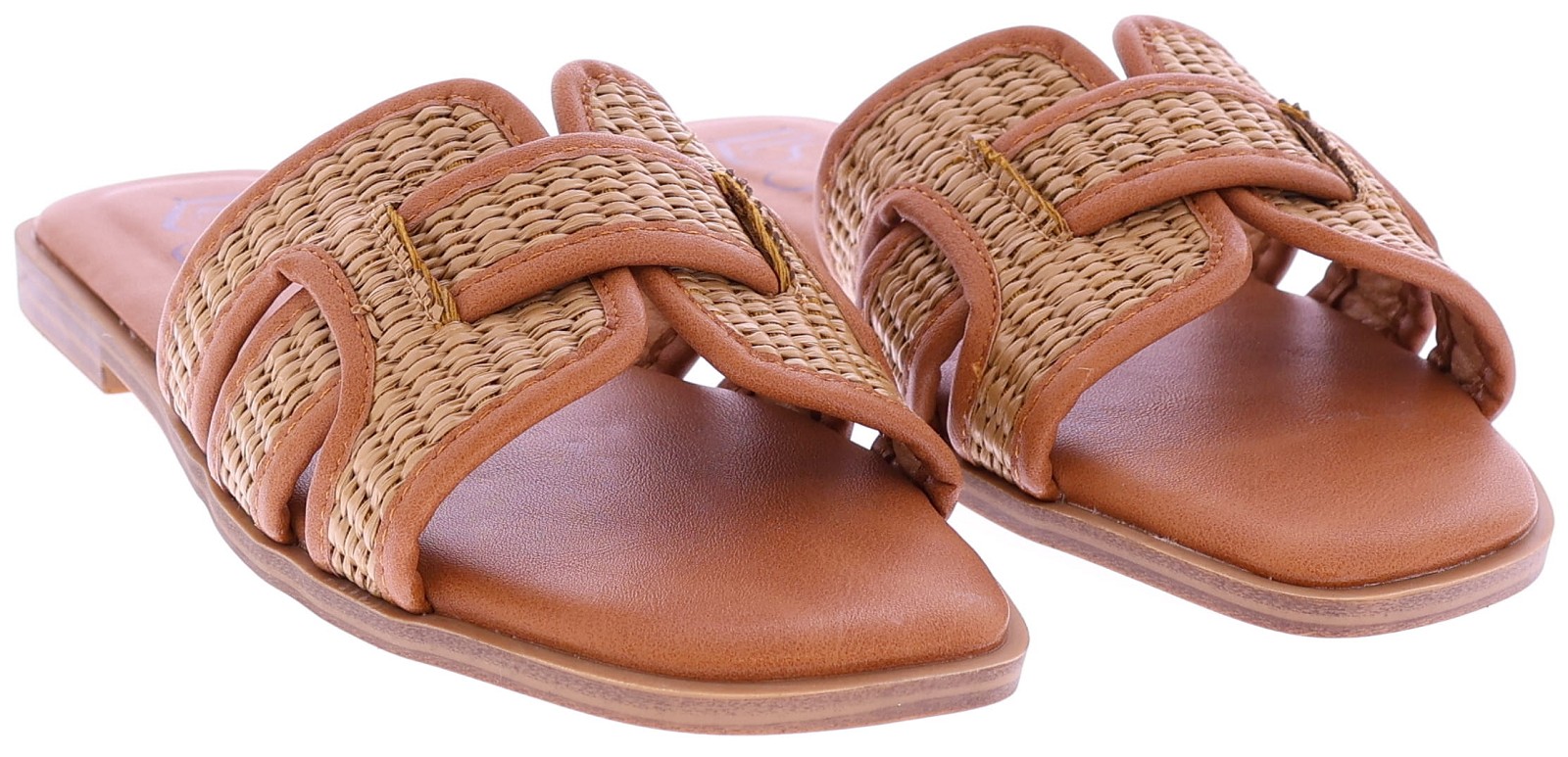 Cognackleurige dames slippers van Lisa & Jo, model Degna. Deze slipper heeft een brede band van raffia met leren randen voor een zomerse uitstraling. De voering is gemaakt van PU-leer en de thunit zool zorgt voor een verzorgde afwerking en licht loopcomfort. Een luchtig en makkelijk te dragen model dat perfect past bij warme dagen en casual outfits."Ondek ook de andere dames slippers van Lisa&Jo bij Klijsen."