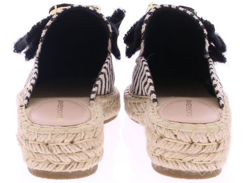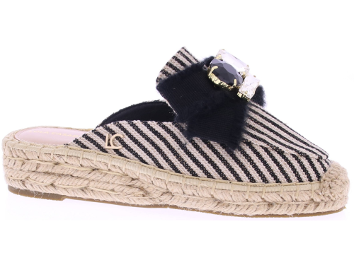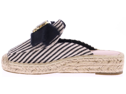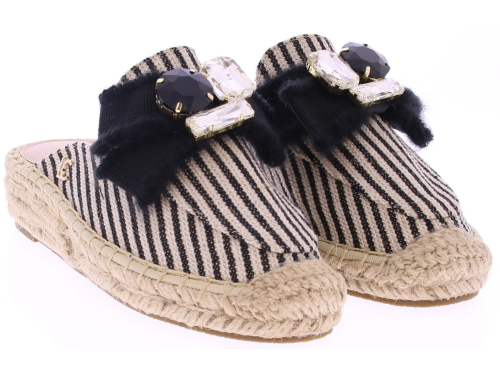 Zwart-wit gestreepte textielen dames muilen van Lola Casademunt. Deze muil is uitgevoerd met een touwzool en een leuke opvallende garnering op de wreef meteen strik en grote stenen. Het open model is makkelijk aan te trekken en prettig voor warmere dagen. Leuk te combineren met een zomerse jurk of rok. Ontdek ook de andere dames muilen van Lola Casademunt bij Klijsen.