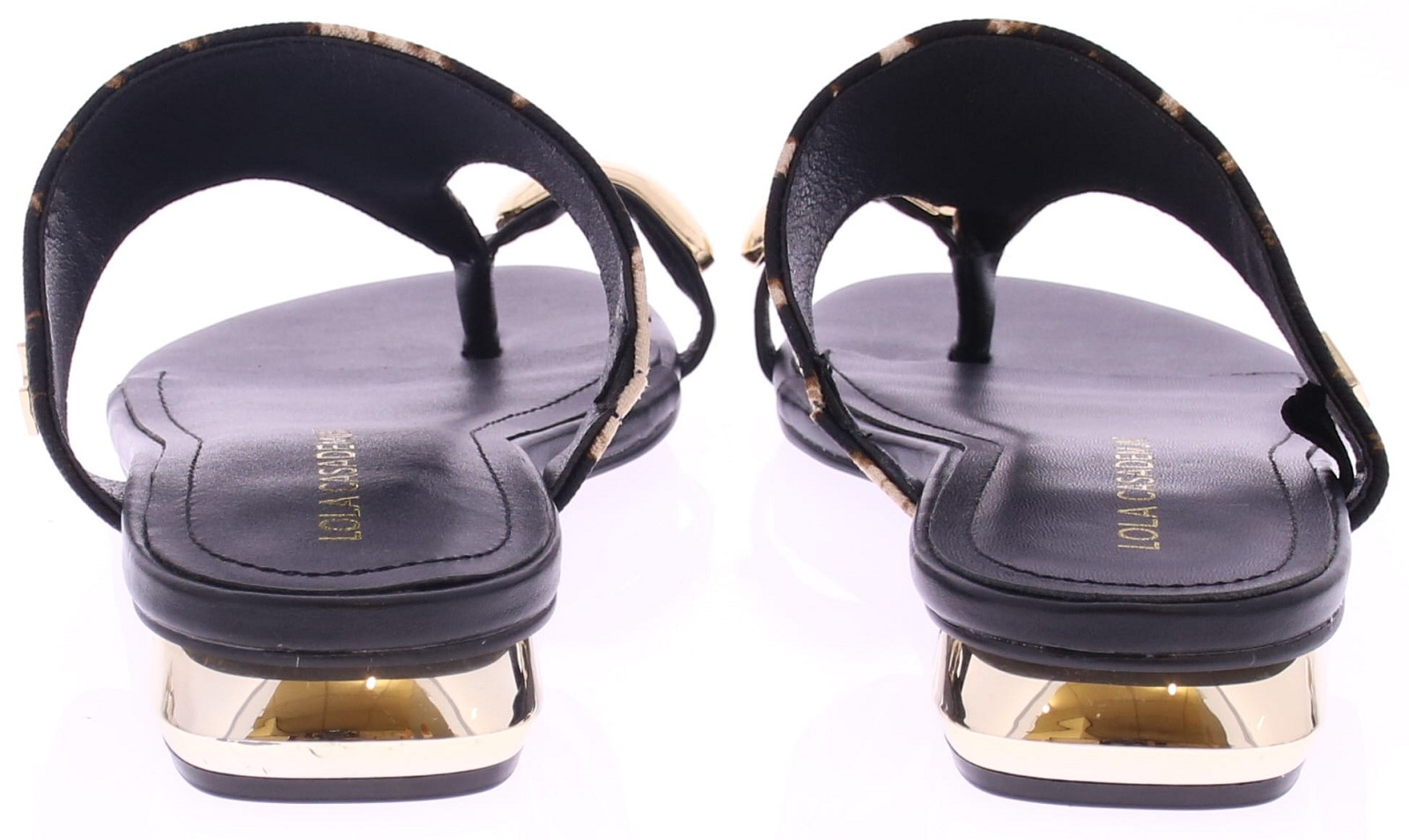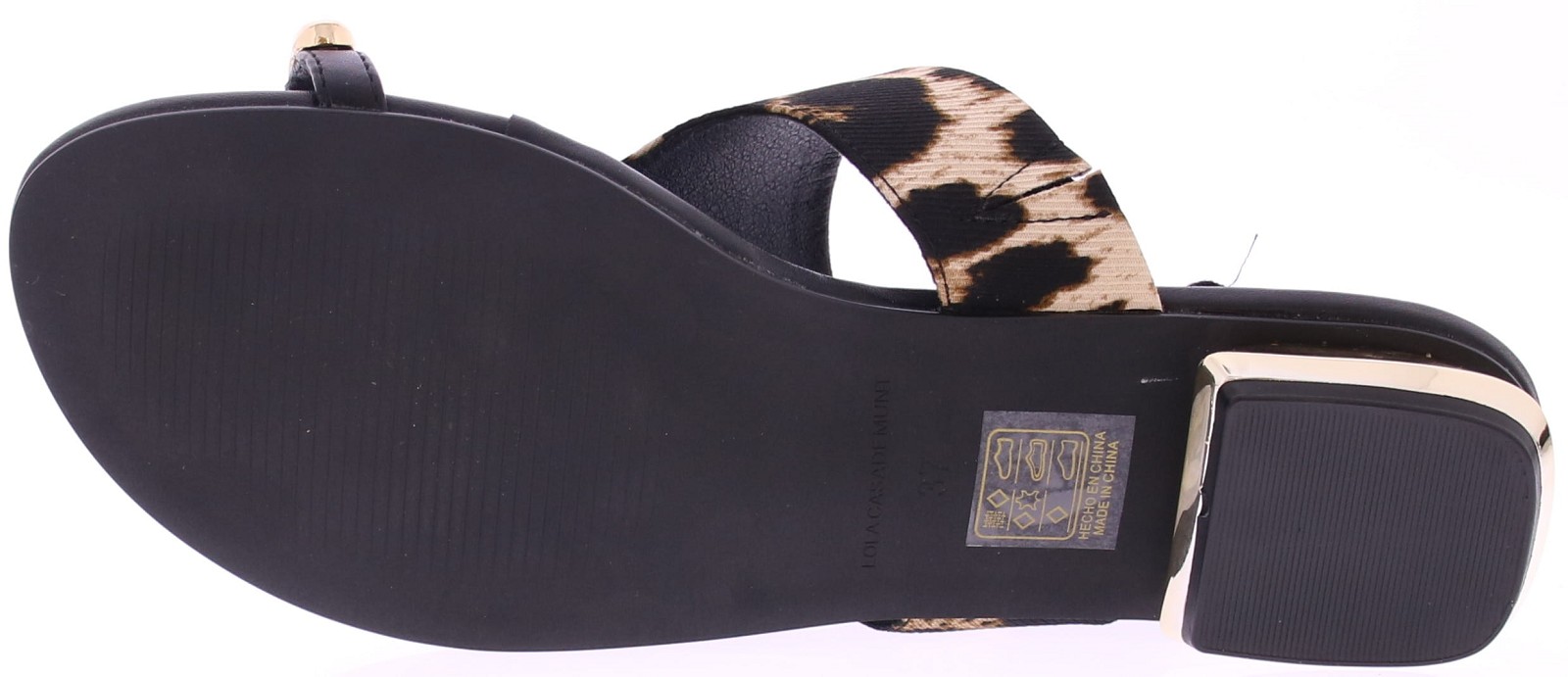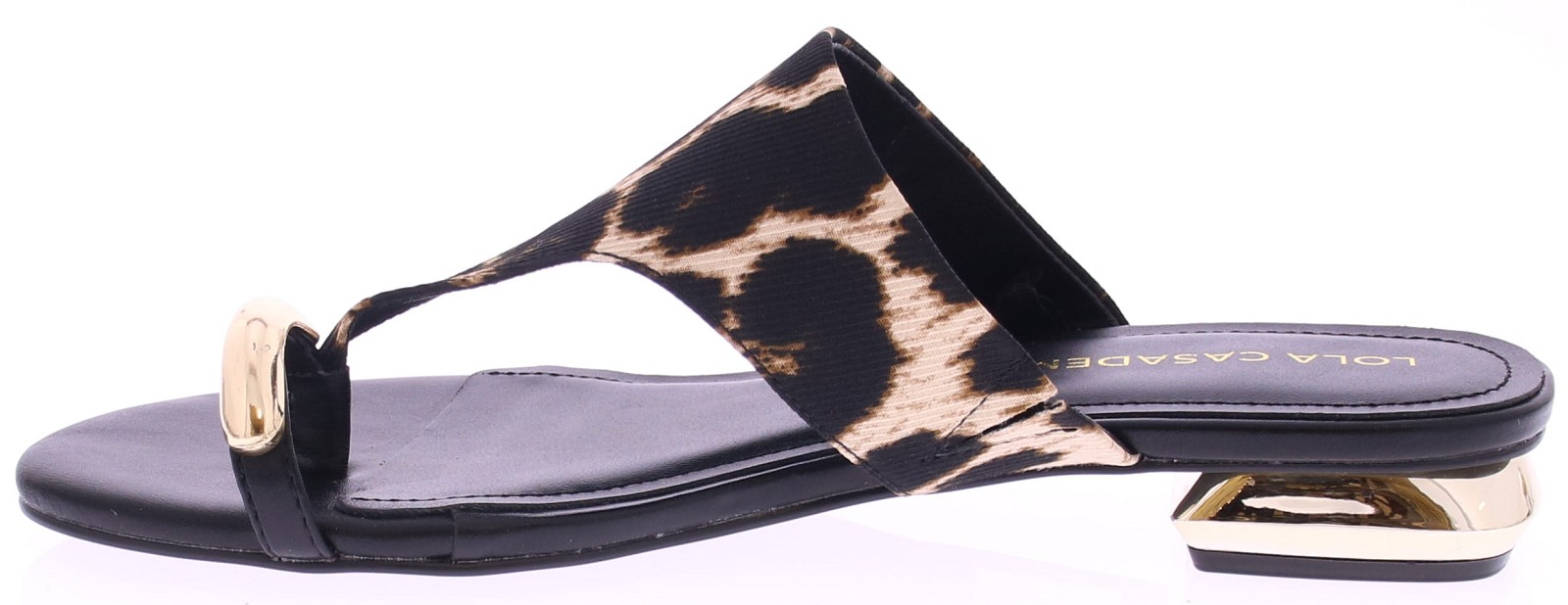 Leopard print dames teenslipper van Lola Casademunt. Deze slipper heeft een brede band met leopard print en een grote goudkleurige ring rond het teenstuk. Het zwarte voetbed is van leer. Leuk bij een zomerse jurk, rok of korte broek. Ontdek ook de andere dames muilen en slippers van Lola Casademunt bij Klijsen.