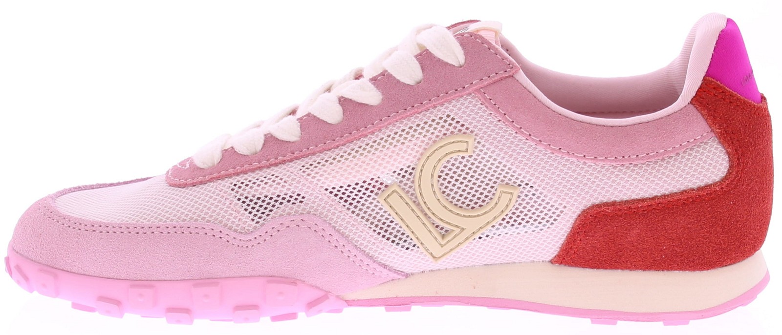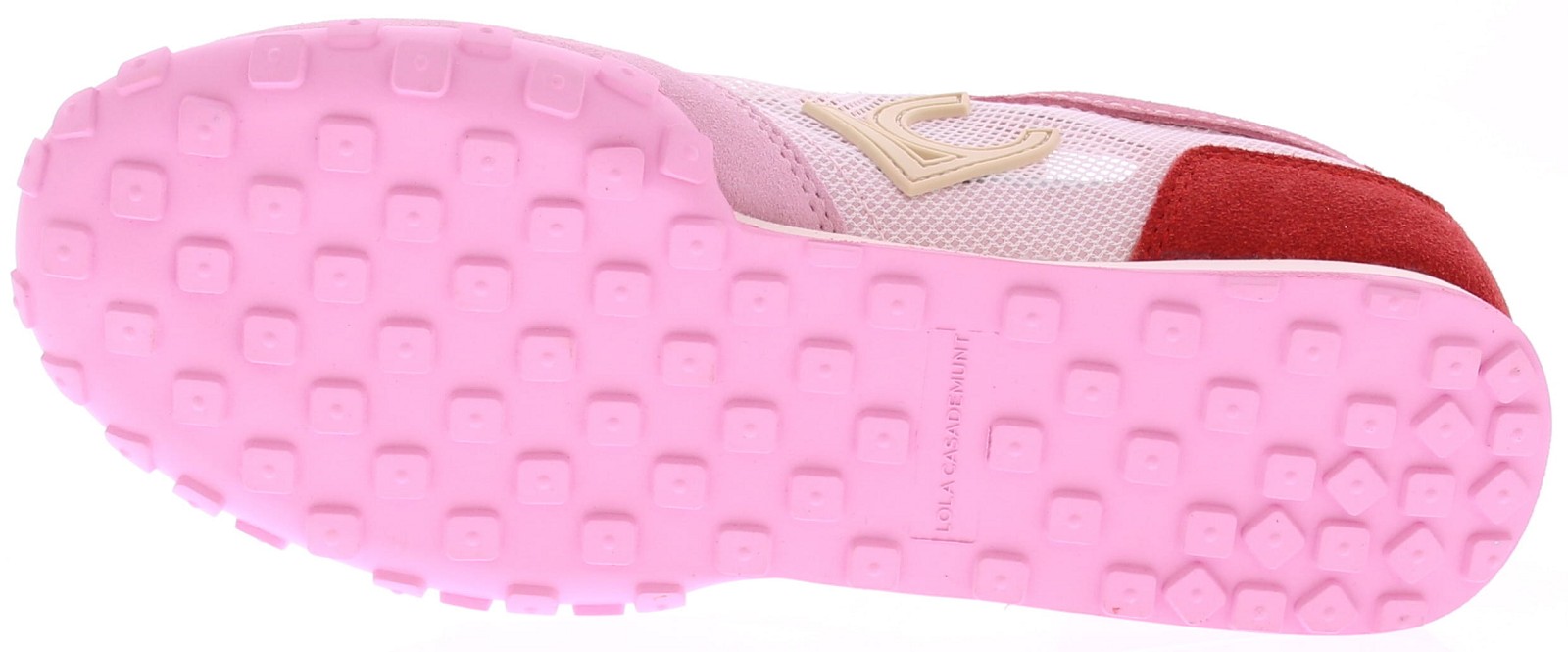 Roze dames sneakers van Lola Casademunt. Deze sneaker is uitgevoerd in een combinatie van leer en doorzichtig mesh, met subtiele rode accenten. De lichte kleur en het open mesh zorgen voor een frisse uitstraling. De rubberen zool geeft goede grip en is prettig voor dagelijks gebruik. Makkelijk te combineren met een jeans, broek of zomerse outfit. Ontdek ook de andere dames sneakers van Lola Casademunt bij Klijsen.