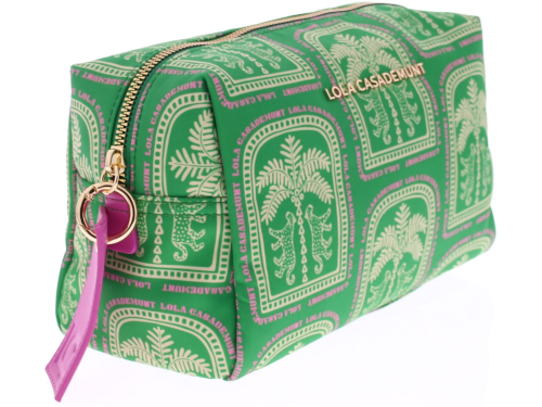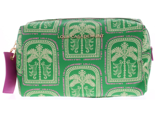 Groene stoffen toilettas van Lola Casademunt. Deze multikleurige toilettas is gemaakt van stof en heeft een opvallende all-over print. De tas is praktisch van formaat met een breedte van 26 cm, een hoogte van 14 cm en een diepte van 10 cm. Ideaal voor toiletartikelen of kleine spullen, zowel thuis als onderweg. Ontdek ook de andere dames accessoires van Lola Casademunt bij Klijsen.