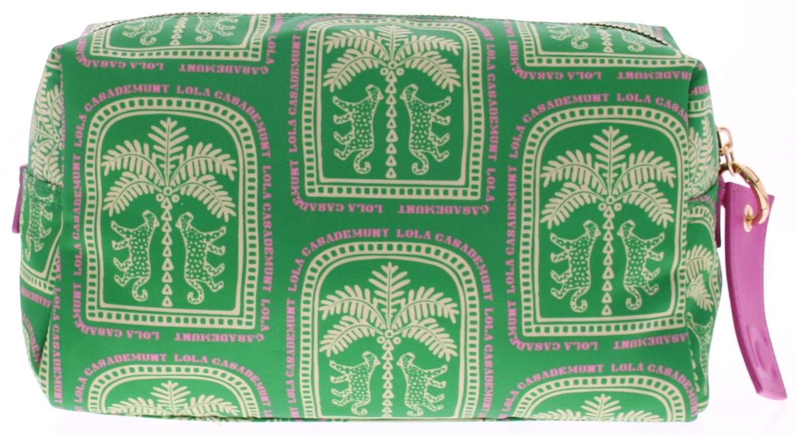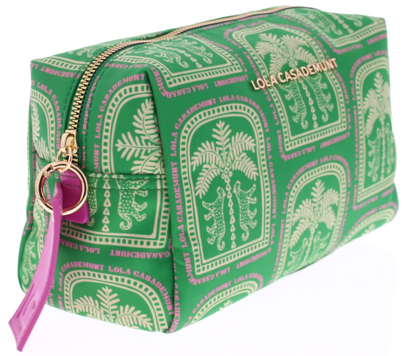 Groene stoffen toilettas van Lola Casademunt. Deze multikleurige toilettas is gemaakt van stof en heeft een opvallende all-over print. De tas is praktisch van formaat met een breedte van 26 cm, een hoogte van 14 cm en een diepte van 10 cm. Ideaal voor toiletartikelen of kleine spullen, zowel thuis als onderweg. Ontdek ook de andere dames accessoires van Lola Casademunt bij Klijsen.