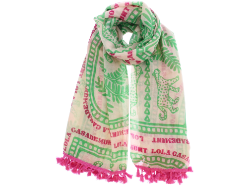 Groene dames sjaal van Lola Casademunt. Deze grote sjaal heeft een afmeting van circa 180 cm lang en 100 cm breed en is gemaakt van 100% polyester. De sjaal is licht van gewicht en voorzien van een opvallende print met franjes aan de uiteinden. Makkelijk te combineren en leuk bij een zomerse outfit of als kleuraccent bij een eenvoudige look. Ontdek ook de andere dames sjaals van Lola Casademunt bij Klijsen.
