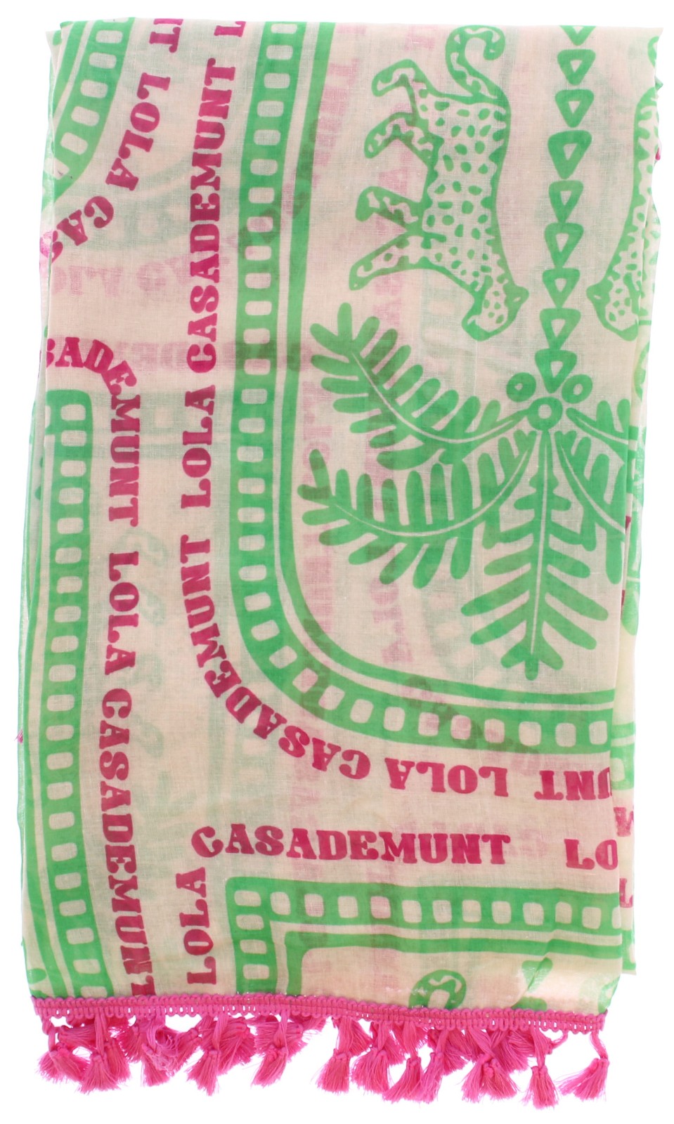 Groene dames sjaal van Lola Casademunt. Deze grote sjaal heeft een afmeting van circa 180 cm lang en 100 cm breed en is gemaakt van 100% polyester. De sjaal is licht van gewicht en voorzien van een opvallende print met franjes aan de uiteinden. Makkelijk te combineren en leuk bij een zomerse outfit of als kleuraccent bij een eenvoudige look. Ontdek ook de andere dames sjaals van Lola Casademunt bij Klijsen.