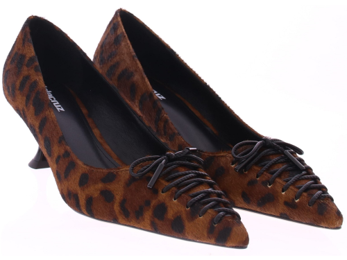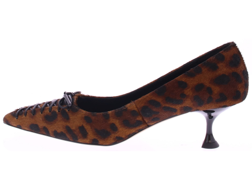 Leopard print ponyhair dames pump van Lola Cruz. Deze elegante pump heeft een sierlijke veter op de voorvoet en een spitse neus. De elegante hak heeft een hoogte van 5 cm en de zool is van leer met een rubber inzet. Stijlvol, veelzijdig en perfect voor zowel dagelijks gebruik als een avondje uit.