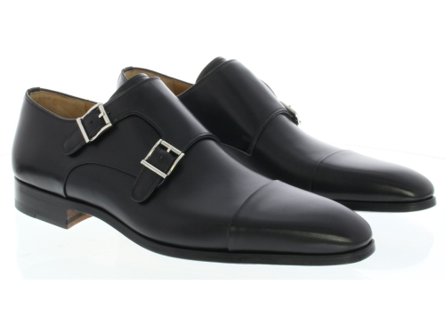 Zwarte leren heren dubbelgesp schoen van Magnanni. De schoen heeft een lederen zool met rubber inzet, perfect voor comfort behoud en natte dagen.