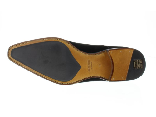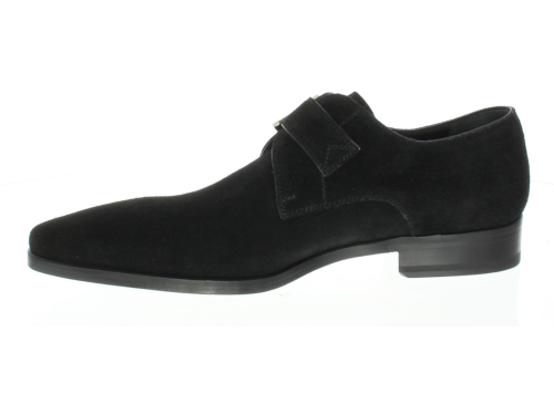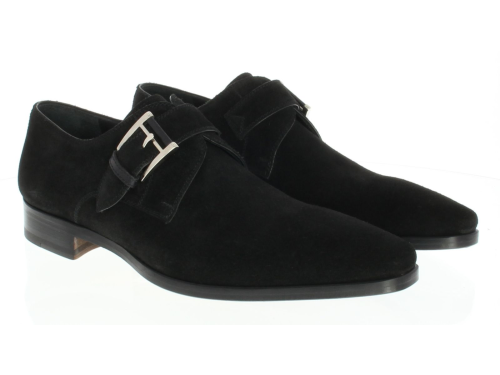 Zwart suede heren gespschoen van Magnanni. De schoen heeft een lederen zool met rubber inzet, ideaal voor comfort behoud en natte dagen.
