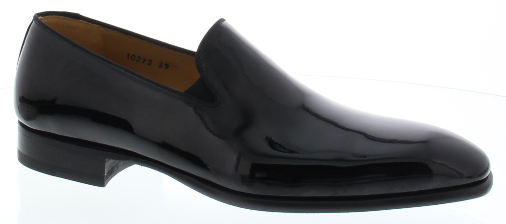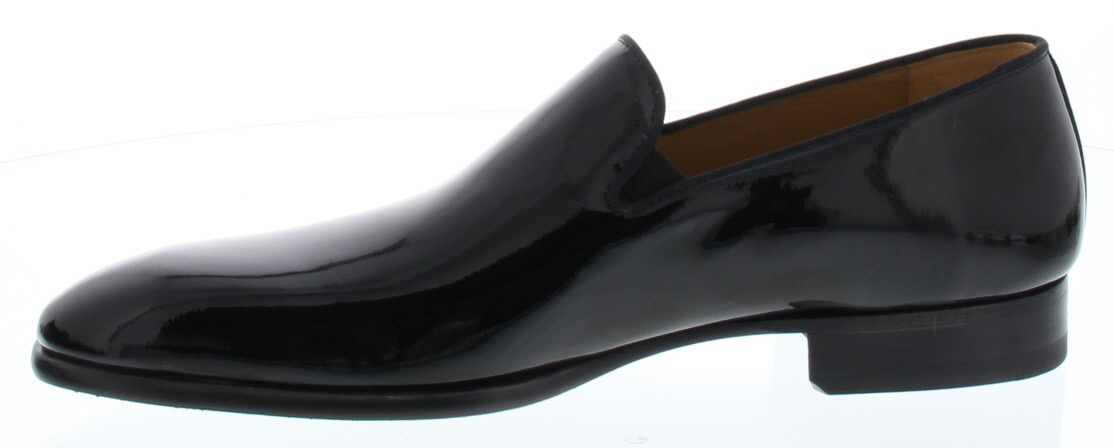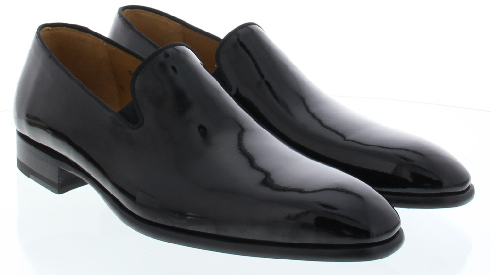 Zwarte lakleren heren instapper van Magnanni. De schoen heeft een leren voering en zool en past perfect onder een smoking.
