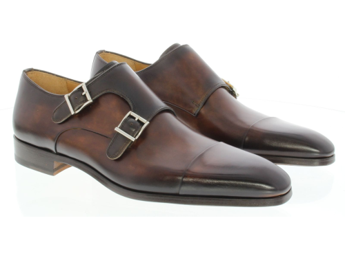 Donker bruine Leren heren dubbelgesp schoen van Magnanni. De schoen heeft een leren zool met rubber inzet, voor comfort behoud en natte dagen.