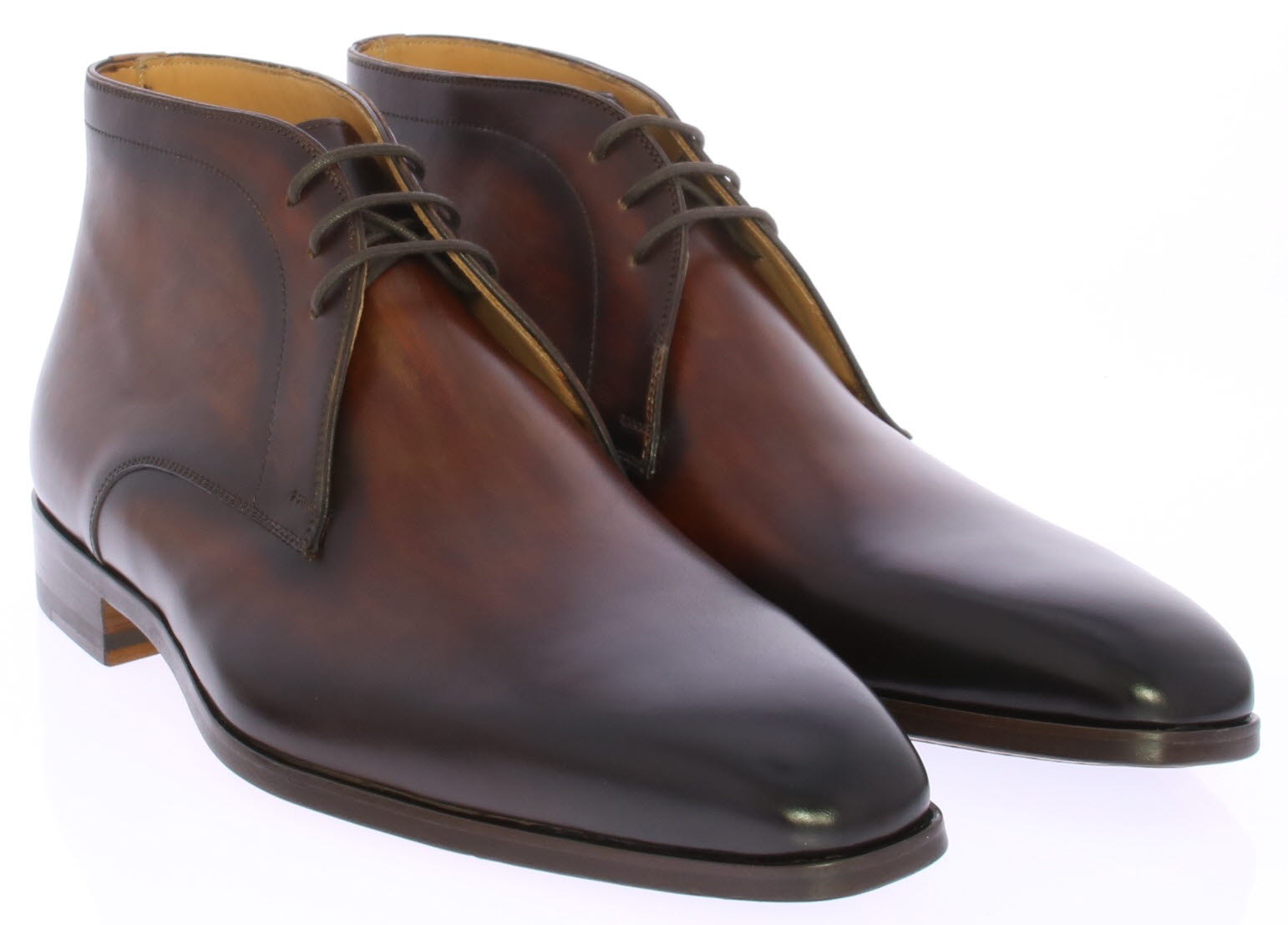 Bruine leren heren enkelboot van Magnanni. De boot heeft een leren voering en een leren zool met rubber inzet.