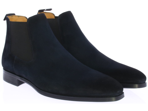 Donker blauwe suede heren chelseaboots van Magnanni. De laarzen hebben een rubberen onderwerk met leren voering en een treklus aan de achterkant voor een gemakkelijke instap. Wij hebben ook een bijpassende riem in onze collectie.