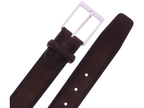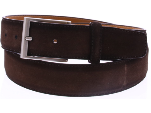 Donker bruine suede heren riem van Magnanni. Deze riem is uitgevoerd in donker bruin suede wat donkerder afloopt naar de zijkanten toe. De riem kan worden ingekort aan de gesp kant.